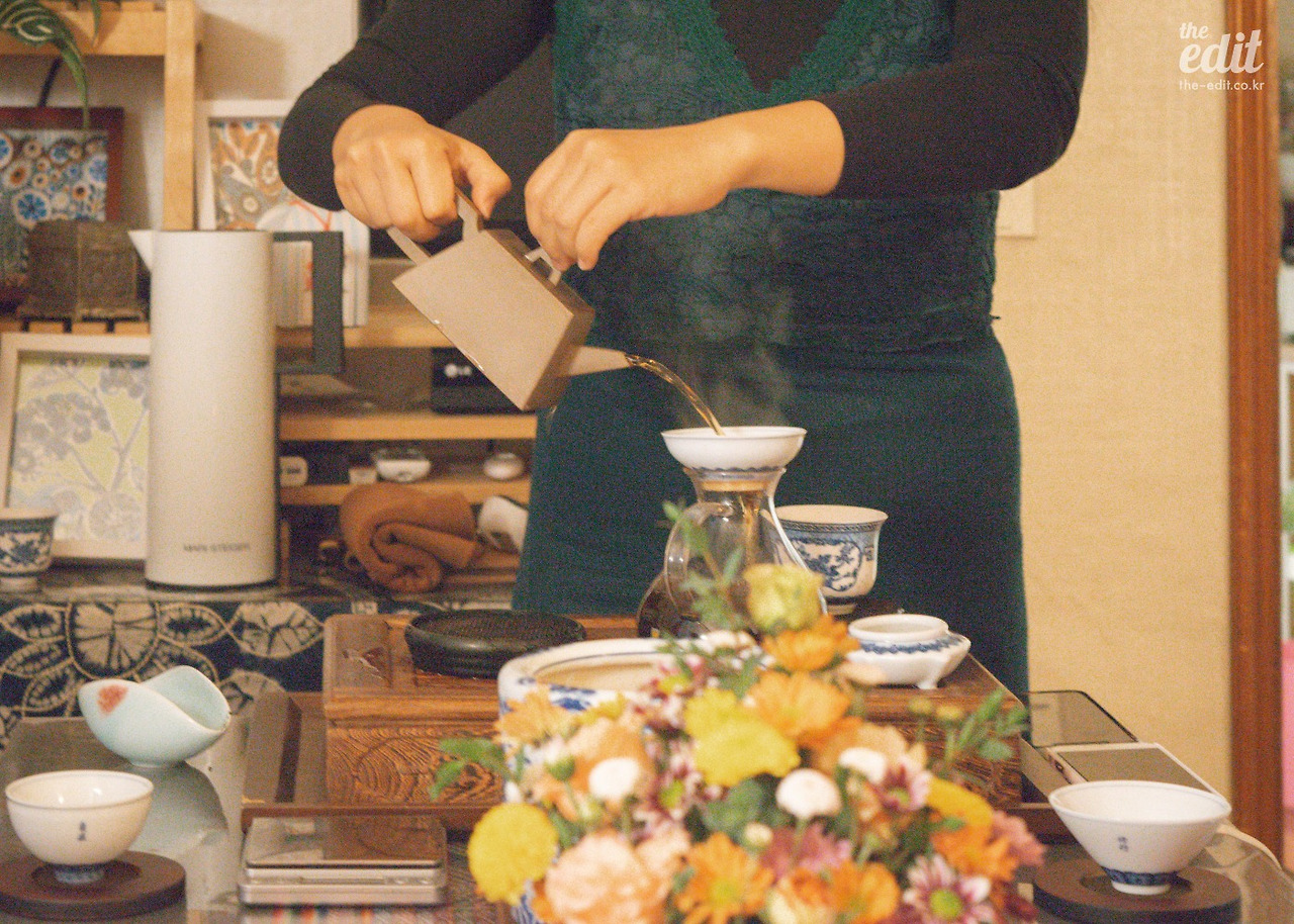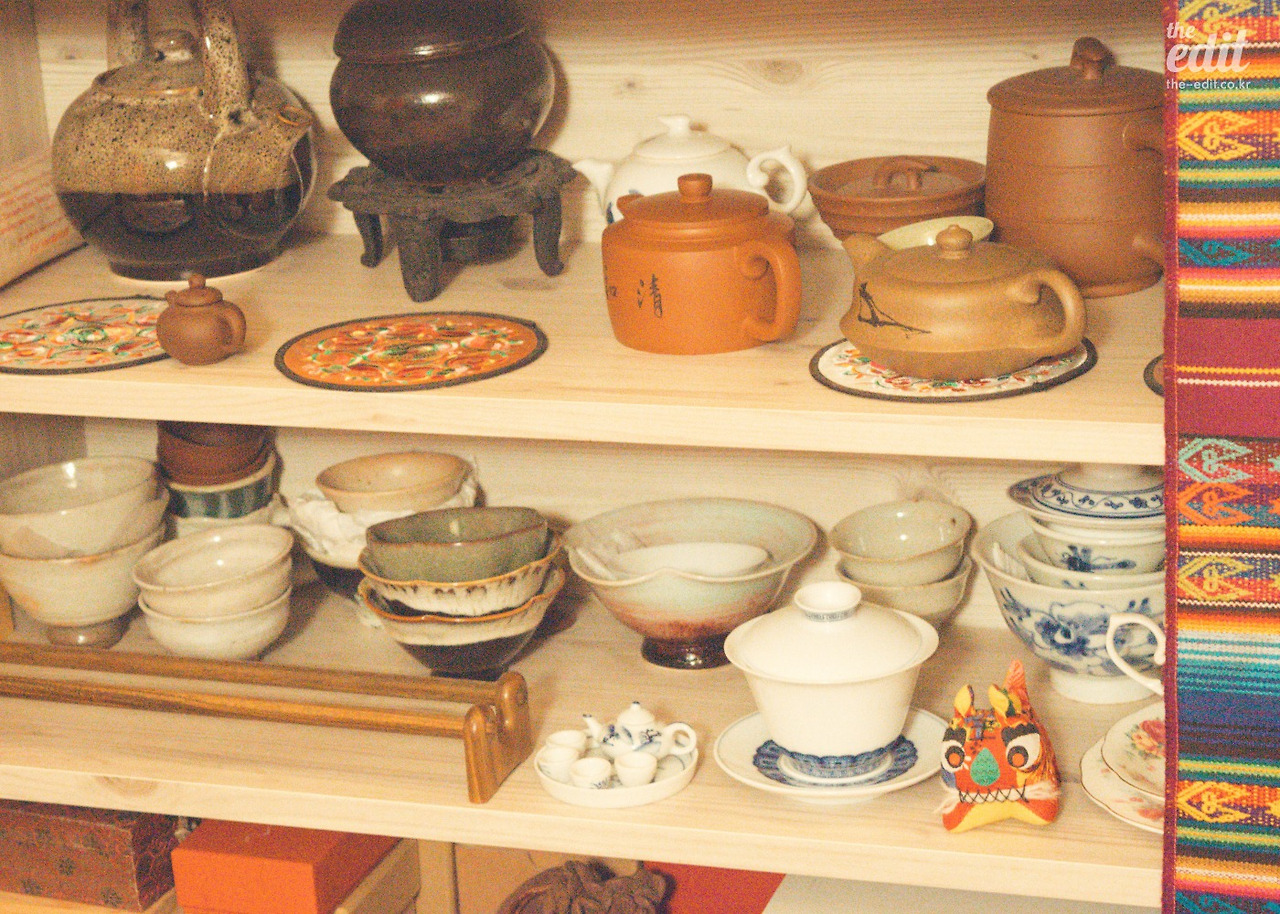 방 곳곳에서 보이는 다기와 보관되어있는 온갖 종류의 차들이 그녀가 보냈던 시간을 말해주고 있었다.