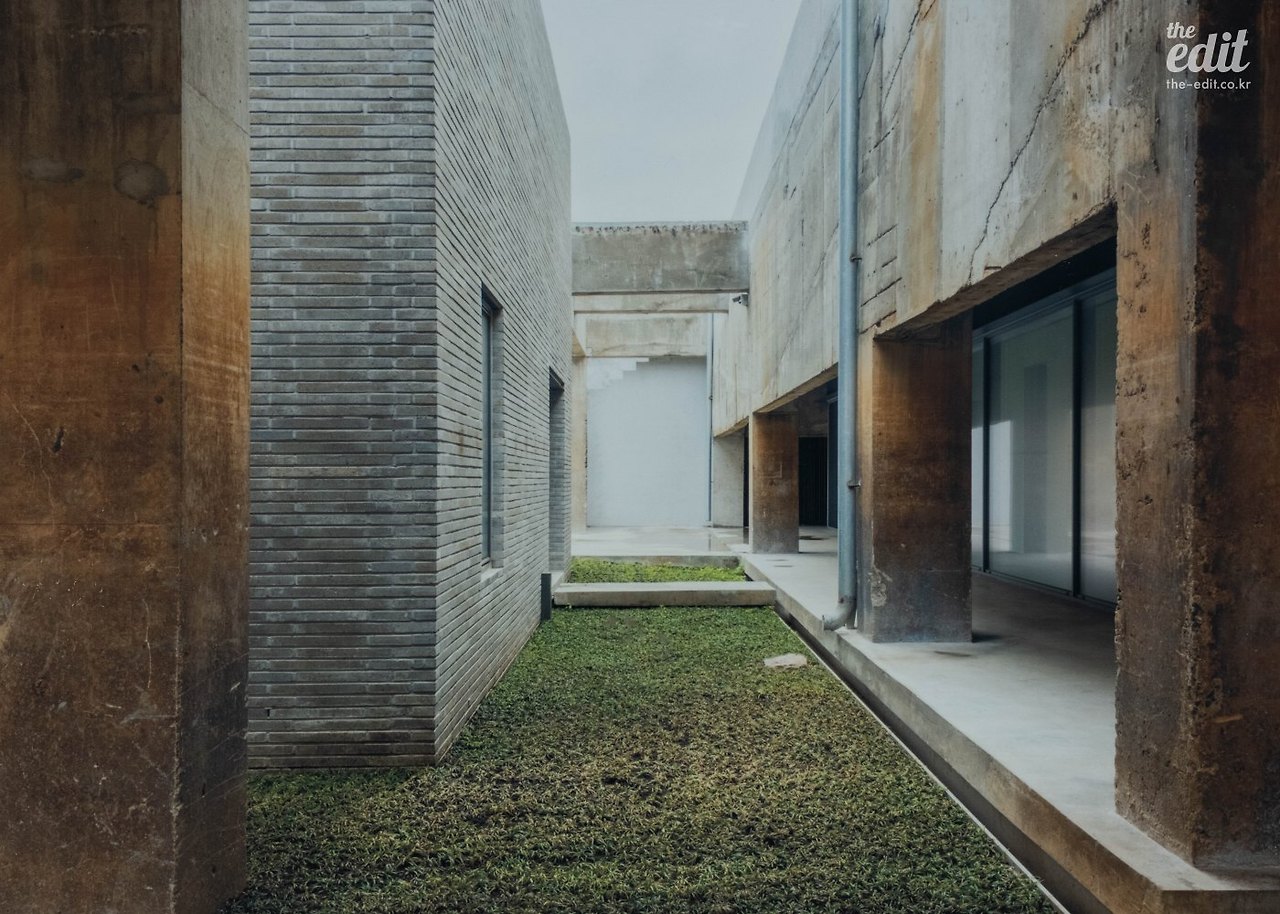 AiR는 지하에 있다. 겉에서 보기엔 한 줄기 높게 솟아오른 전망대를 제외하고 여기에 건물이 있다는 단서를 거의 찾아보기 힘들다. 한때 펜션이 될 운명이었다가 20년 동안 물에 잠겨 박제되었던 철근 콘크리트는 철거되지 않고 이곳의 뼈대가 되었다. 멋진 설계 덕분에 지하지만 여전히 해가 들고 바닥에는 풀이 자란다. 기존에 있던 것을 모두 거부하지 않고 새로운 것이 그 속에 자연스럽게 스며들도록 한 기획은 이번 가파도 프로젝트를 관통하는 철학이다.