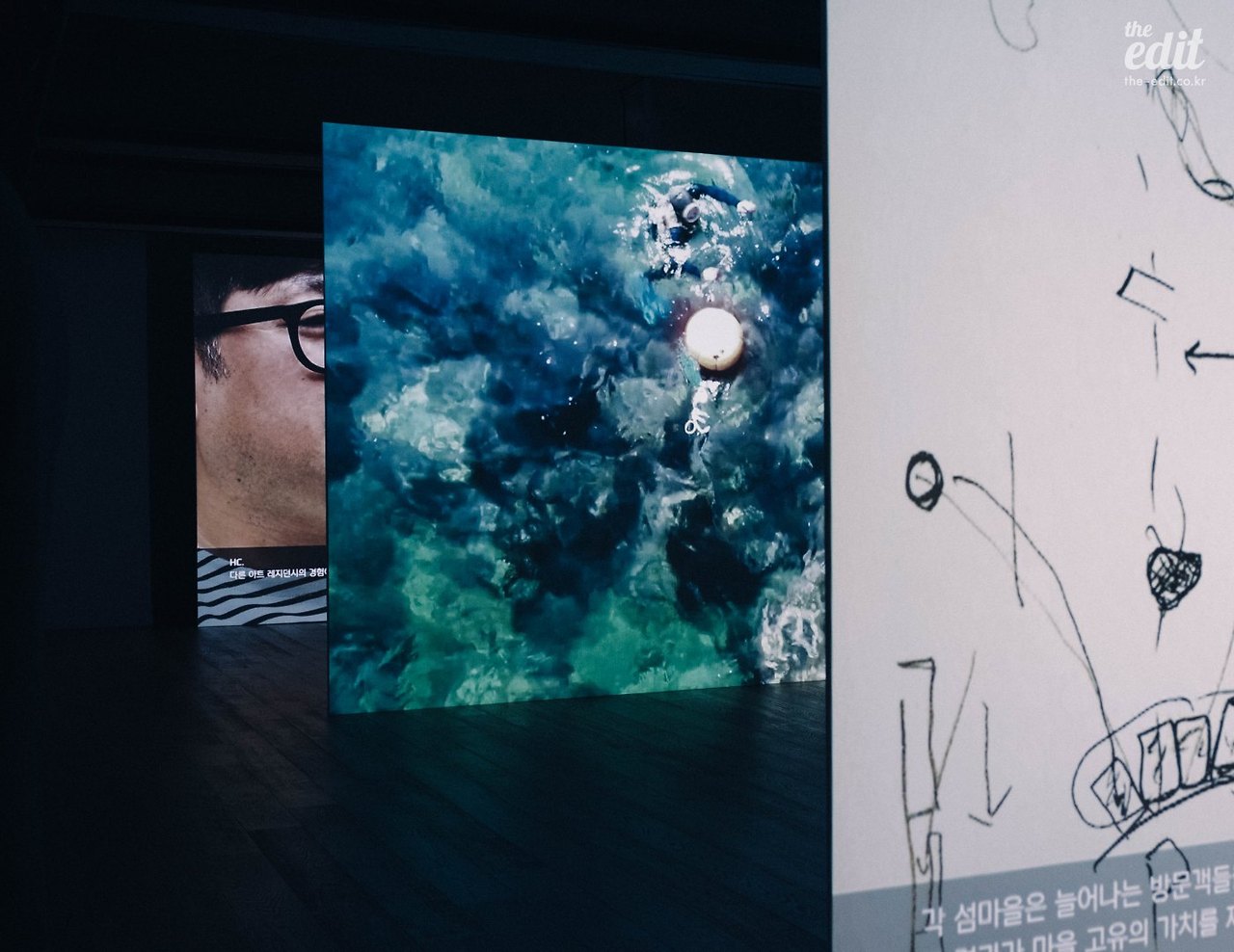 반대 쪽 세 개의 장면이 레이어드된 화면은 이 가파도 프로젝트의 과거와 현재 그리고 미래를 보여주고 있었다.
