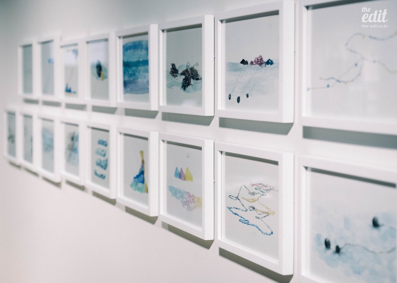정소영 작가는 그림을 그렸다. 한때 바다를 가르던 부표와 표식들이 가파도까지 떠내려와 바다 위에 넘실거리는 모습이 꼭 바다가 그린 드로잉처럼 보였다고 한다. 바다가 그림 그림을 또다시 그려낸 그림이다.
