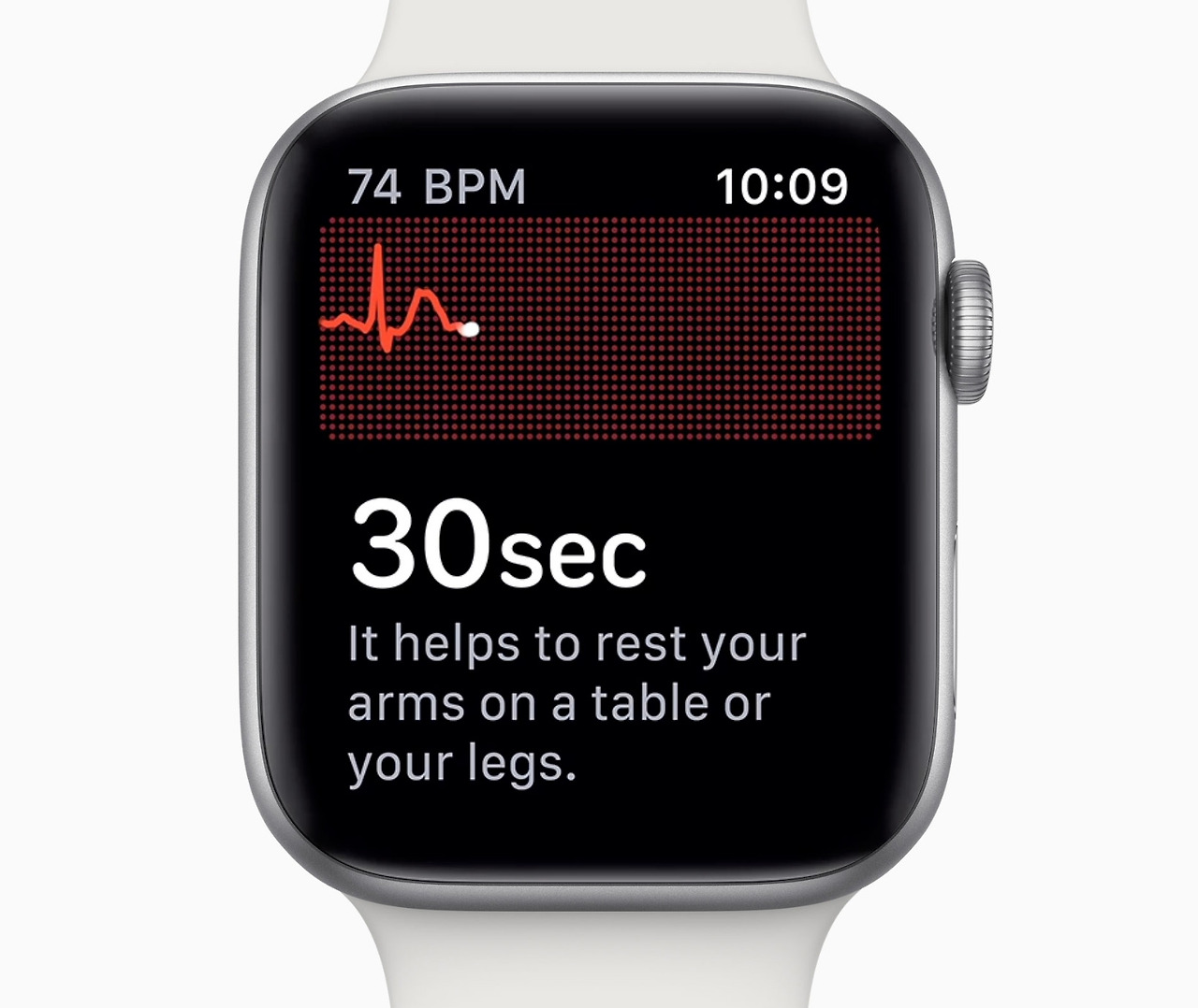 현재 우리나라에서는 사용이 불가하지만, 애플워치 시리즈4의 심전도 측정 기능은 간단하다. 애플워치를 착용하지 않은 반대편 손가락을 크라운에 갖다대면 된다. 한쪽 손 끝에서 다른 한쪽 손목까지. 전극과 전극의 폐쇄회로를 만들어 몸을 한 바퀴 돈다고 생각하면 쉽다. 디지털 크라운에 탑재된 전극과 후면 크리스탈의 전기 심박센서가 함께 작동하며, 심장 리듬 분류를 표시해준다.