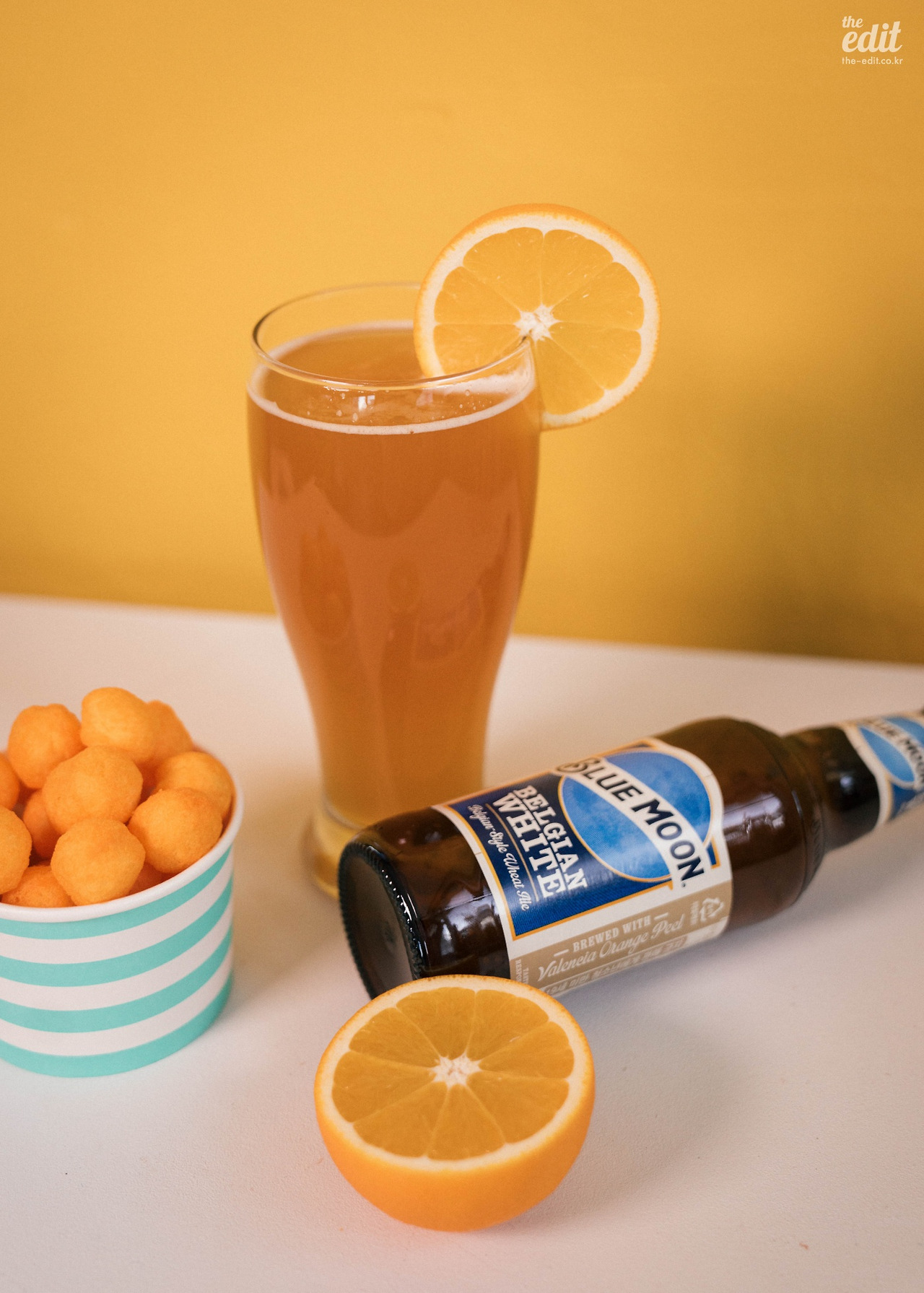 블루문은 맛도 색도 오렌지에 상당부분을 기대고 있어요. 여과 하지 않아 탁하고 오렌지 빛의 맥주 색. 오렌지의 향과 달콤함이 강한 맛 덕분에 오렌지 가니쉬를 더하면, 그 풍미가 더 올라갑니다. 화이트 비어의 고소한 맛을 기본으로 딱 좋은 쿰쿰함과 고소함 그리고 오렌지의 달콤하고 상큼한 맛까지. 크으. 언제 마셔도 아주 즐거운 맥주입니다.