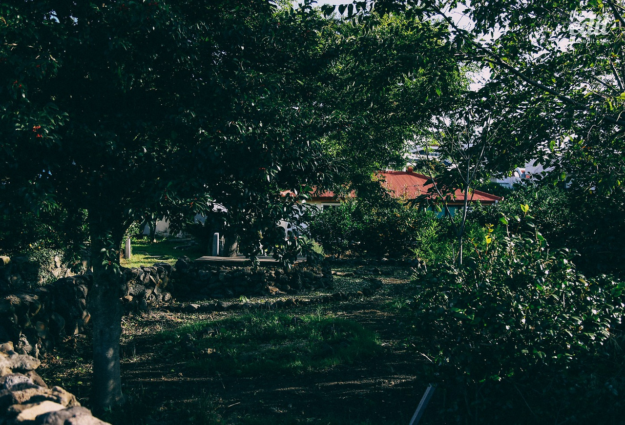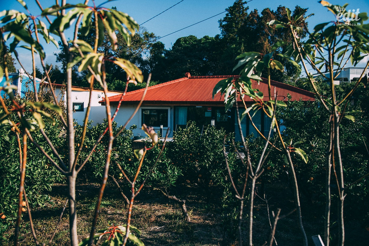 마당에는 온갖 나무와 허브가 심어져 있고 도순돌담집 주위는 온통 귤밭이 감싸고 있다. 한두그루가 아니다. 수백 그루의 귤나무가 집을 아늑하게 두르고 있다. 옛날 제주도 마당 넓은 집에는 집집마다 텃밭처럼 귤밭이 있었다. 귤나무는 조경 역할도 하고 방향제 역할도 하고, 간식도 되고 소득원이 되기도 했다. 텃밭에 있는 귤나무로 아이들을 대학까지 보내는 집도 있었다고 한다.