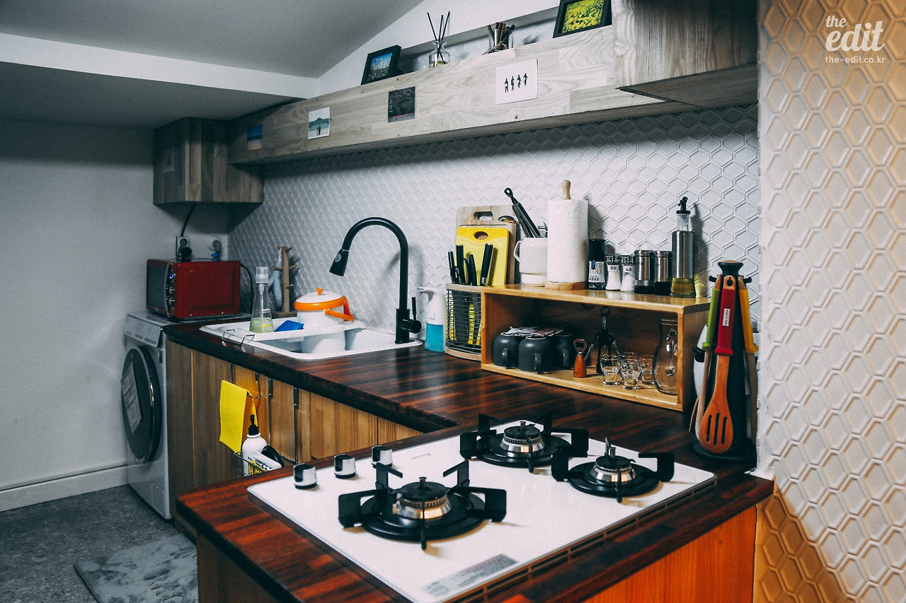 그래서 에어비앤비나 스테이 같은 숙소가 대안으로 떠올랐다. 규격화된 숙박업소가 아니라 호스트의 개성과 그 지방의 특성이 묻어 있는 숙소들이다. 도순돌담집은 좀 더 진보된 형태의 새로운 스테이다. 지역 특성을 살리고 지역을 재생한다는 메시지도 좋지만 스테이 안에서 모든 것이 가능하도록 각종 편의시설을 편집증적으로 구비해 놓은 것이 인상적이다.