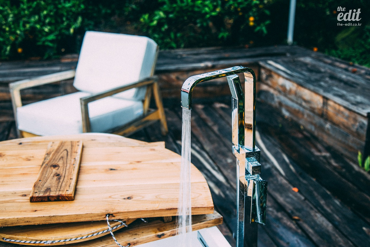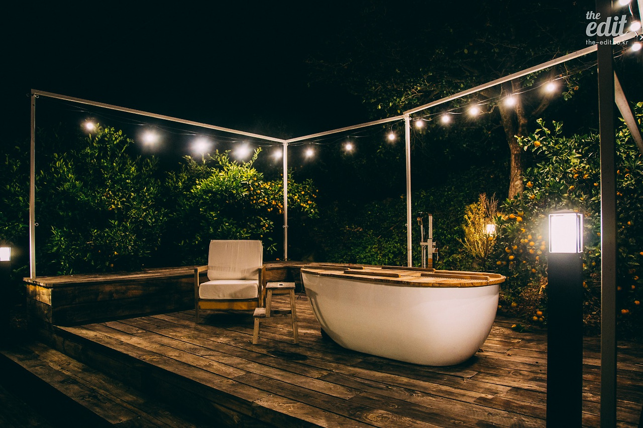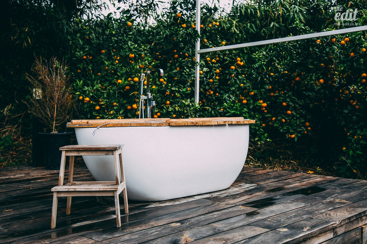 도순돌담집의 백미는 욕조다. 귤 밭 가운데 욕조가 있다. 귤향기를 맡으며 거품목욕을 즐길 수 있다. 손만 뻗으면 귤을 잡을 수 있기 때문에 간식까지 먹으며 즐길 수 있다. 야외 욕조야 이제 흔하디 흔해졌지만 귤을 먹으며 목욕을 할 수 있는 곳은 처음 본 듯 하다.
