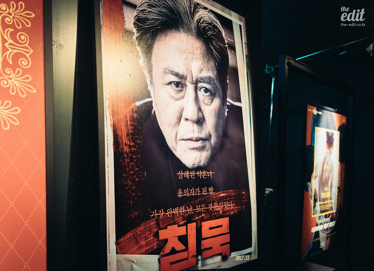 그 옆에는 세 개의 포스터 나란히 놓여있었다. 최민식의 얼굴이 크게 들어간 <침묵>이라는 영화의 포스터는 아까 얘기했던 ‘B컷은 분위기를 담는다’라는 말과 반대되는 것처럼 보일 수도 있는데, 꼭 그렇지만도 않다. 얼굴이 반드시 들어가지 않아야 좋은 포스터인 것도 아니고, 영화에서 최민식의 알 수 없는 표정이 중요한 단서이기도 하니까.
