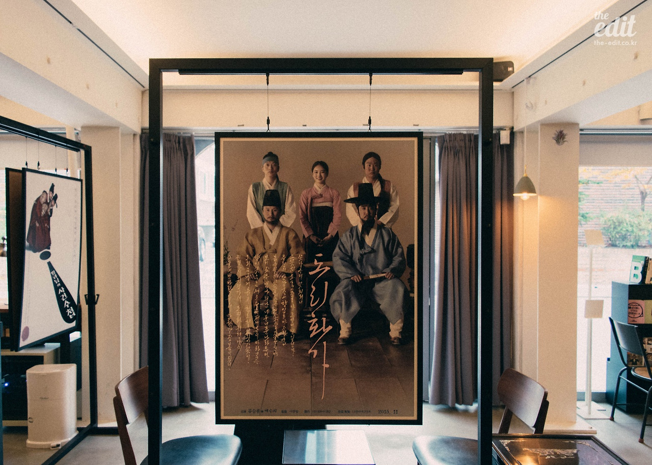 김성우 대표는 신촌살롱은 전시만을 위한 공간이 아니라고 설명했다. 강연도 할 수 있고 커피도 파는 무엇이든 될 수 있는 공간이라고 했다. 참고로 김성우 대표는 영화 <아저씨>의 프로듀서였고 최근에는 <미씽: 사라진 여자>를 기획했다. 자, 이제 본격적으로공간에 대한 이야기를 할까. 여긴 1층과 지하 1층으로 구성되어 있는데, 우선 1층부터 둘러보자. 현관문을 열고 들어가자마자 마주치는 포스터는 <아가씨>.
