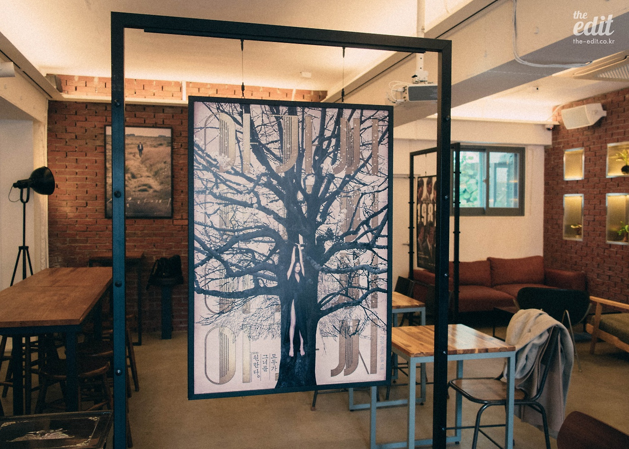 1층에는 사람들이 마주 앉는 테이블이 있고, 커피를 제조하는 등 살롱의 성격을 많이 강조하고 있다면, 지하는 완벽히 전시에 집중하고 있다.