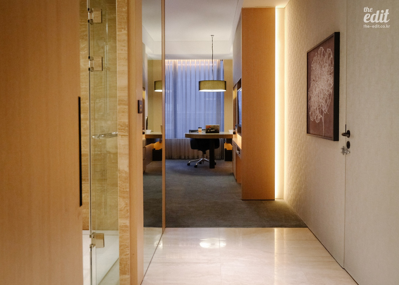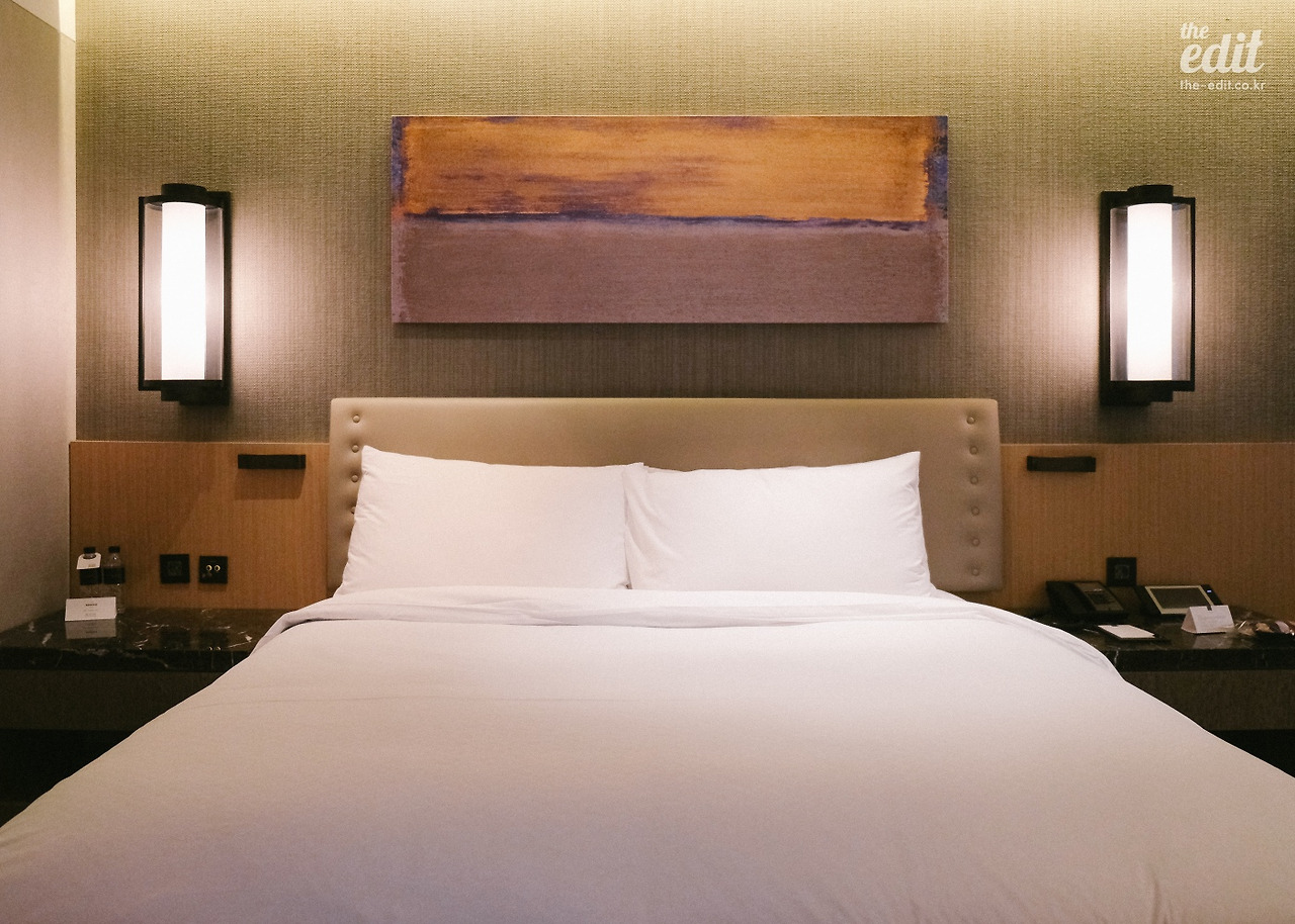 룸컨디션은 내가 가본 서울 시내 호텔 중 최고라고 평하고 싶다. 인테리어 자체는 인상적이지 않다. 우중충한 날씨와 노오란 조명 덕분에 사진도 형편없이 나왔기도 하지만. 실제로 머무를 때 느낀 럭셔리함에 비해 포토제닉하거나 아기자기한 공간은 아니었다.