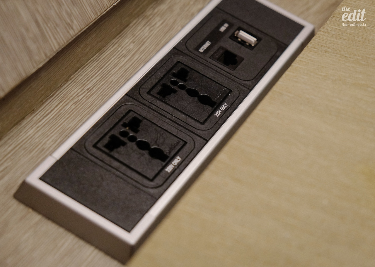 책상 한켠에 모든 콘센트가 완비되어 있었음은 물론이다.
