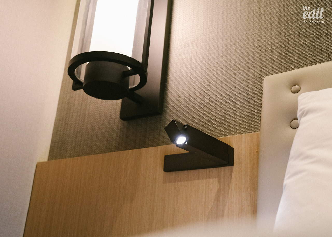침대 양옆의 독서등이 상당히 영리하다. 손쉽게 각도를 조정할 수 있다.