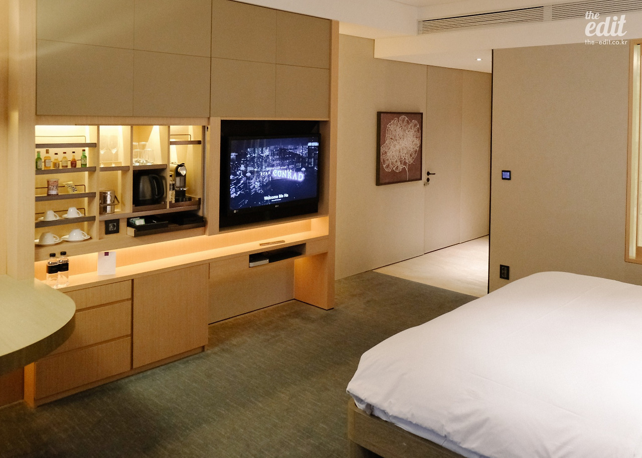 가끔 호텔에 투숙하면서 “아, 여긴 한 달 쯤 살아도 되겠다.” 싶은 곳이 있다. 콘래드가 그랬다. 널찍한 통로나 옷장도 그렇고, 오랜시간 머물러도 될 만큼 편안한 방이었다. 물론 내 방이 된다면 여기도 사정없이 더러워지겠지만.