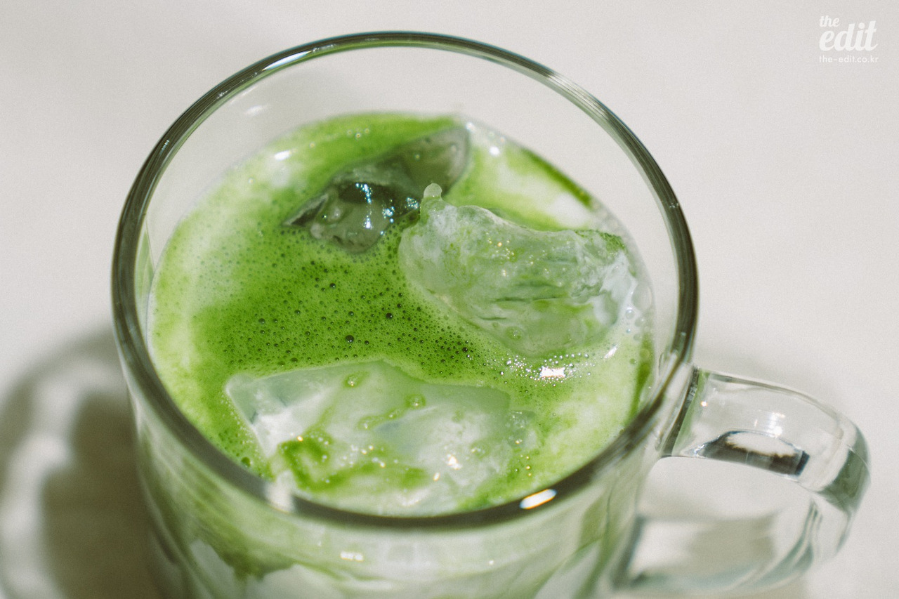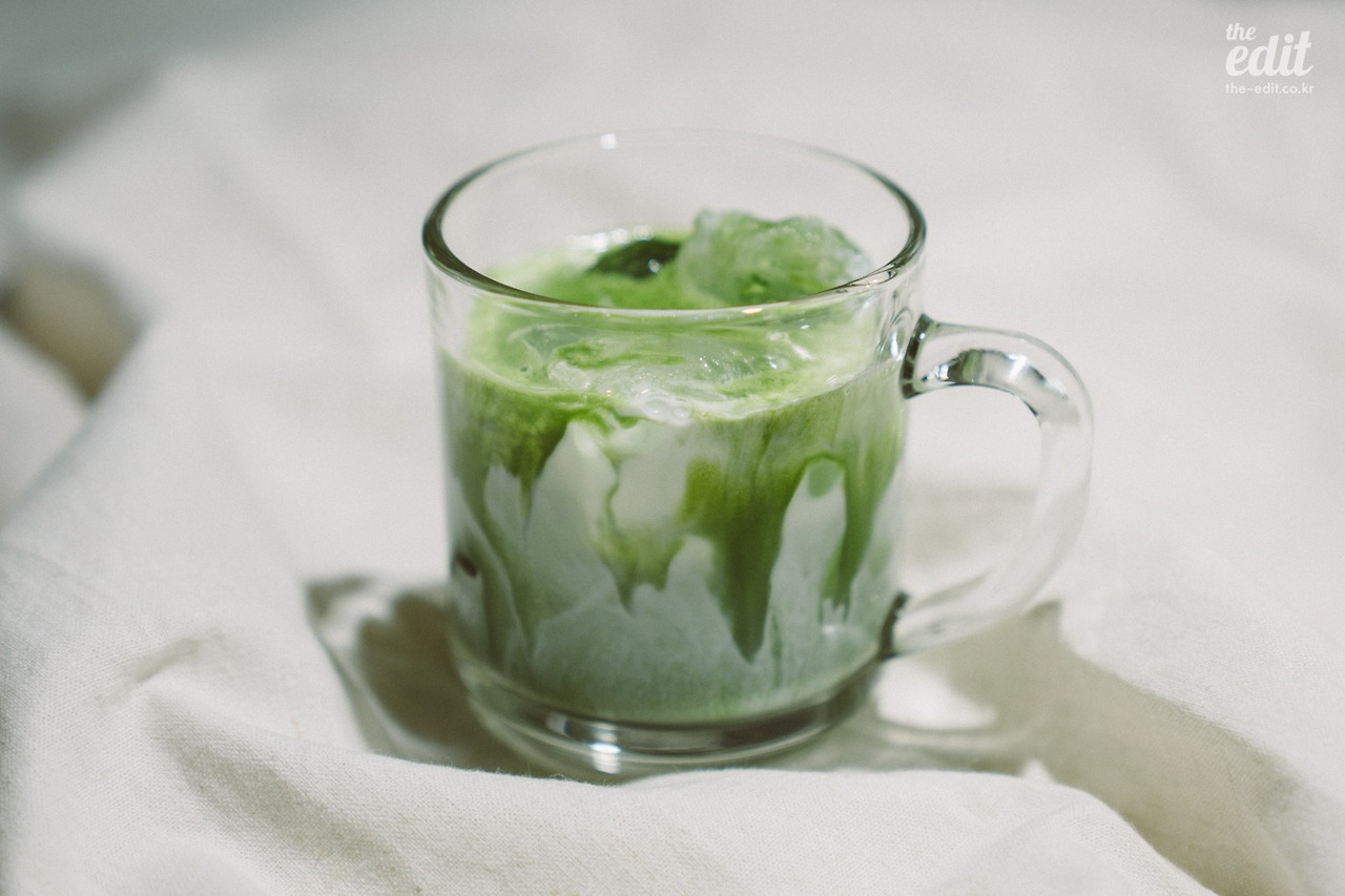 금세 어여쁜 연둣빛의 아이스 말차 라떼가 완성됐다.