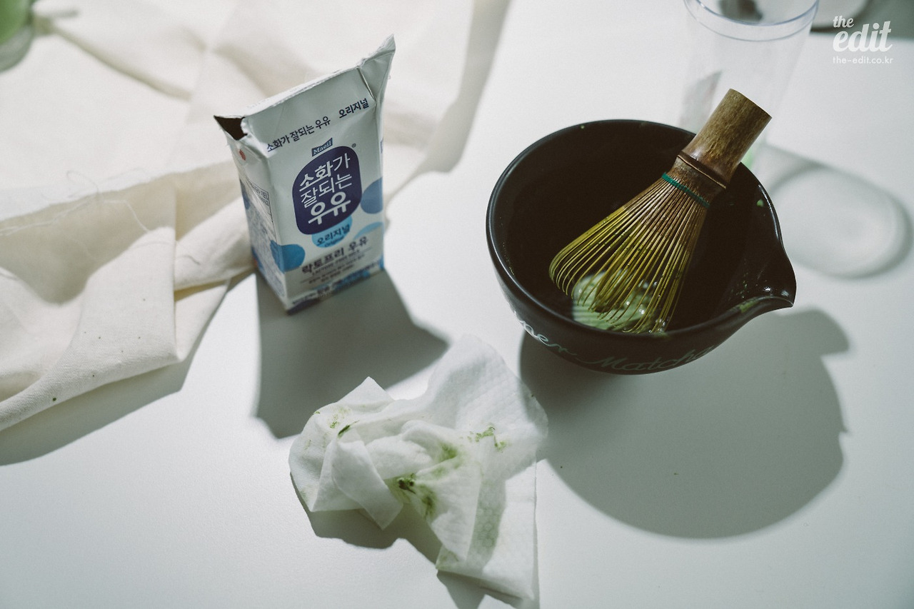 시원하게 핸드 메이드 말차 타임을 즐기고 나니 현자 타임이 몰려온다. 말차를 격불한다고 흰 테이블 위에 묻은 초록 핏자국을 닦아내고, 차완과 차선을 설거지한 뒤 말려준다. 즐겁고 맛있는 시간이었지만 사 먹는 게 더 좋을지도 모르겠다. 어쨌든 에디터H의 즐거운 취미 생활은 여기까지. 다음엔 또 무엇을 마실까.