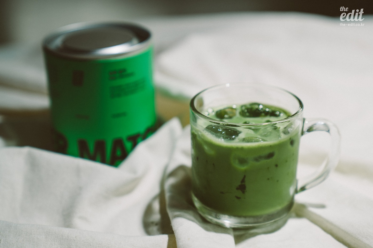 클래식 말차에 실패하고 말차 라떼 제조에 들어갔다. 격불한 말차를 차가운 우유 위에 사르르 얹어준다. 참고로 찬 우유에서는 말차 가루가 잘 섞이지 않는다, 차선으로 잘 섞어준 뒤 우유 위에 뿌려줘야 곱고 뽀얀 말차를 맛볼 수 있다.
