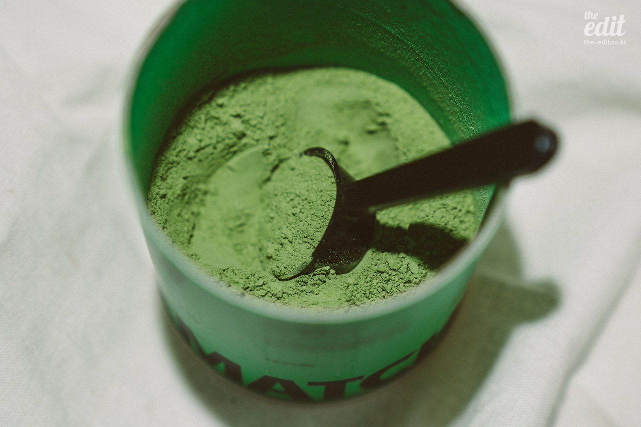 봉지를 뜯어 통에 탈탈 털어 넣어 보았다. 뽀얗고 고운 말차 가루가 미세먼지처럼 잠시 안개를 만든다. 잎차와는 확실히 다른 진한 녹차 향이 풍긴다. 색깔도 너무 예쁘다.