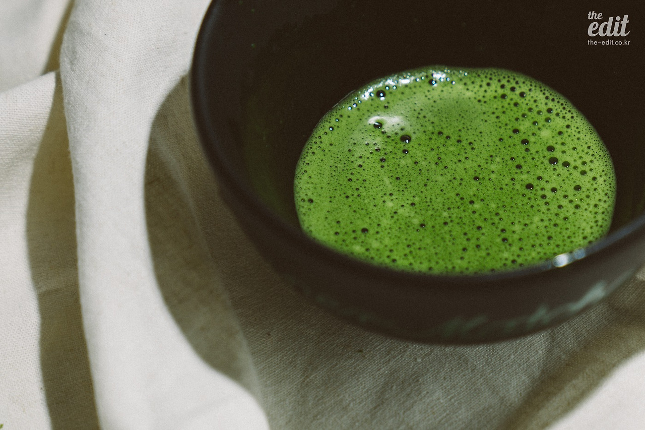 말차는 찻잎을 쪄서 맷돌에 곱게 갈아 분말 형태로 만드는 차를 말한다. 새싹이 올라온 햇차를 20일 정도 햇빛을 차단해 재배한 뒤 증기로 찌기 때문에, 이렇게 선명한 녹색이 나오는 거라고.