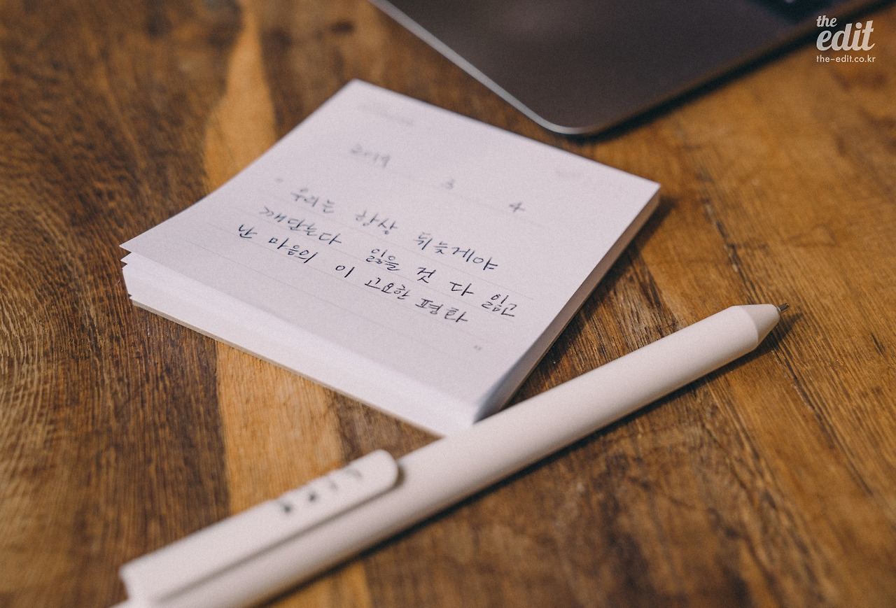 1DAY INSPIRATION엔 매일 한 장씩 떠오르는 문장이나 인상 깊었던 구절들을 적어두곤 한다. 펜으로 꾹꾹. 종이가 아니라 머릿속에 흔적을 남긴다는 기분으로. 컴퓨터나 스마트폰을 잠시 내려놓고 오늘 하루 기억에 남았던 순간, 미래에 대한 계획을 기록하기 위한 세트라고 할 수 있다.