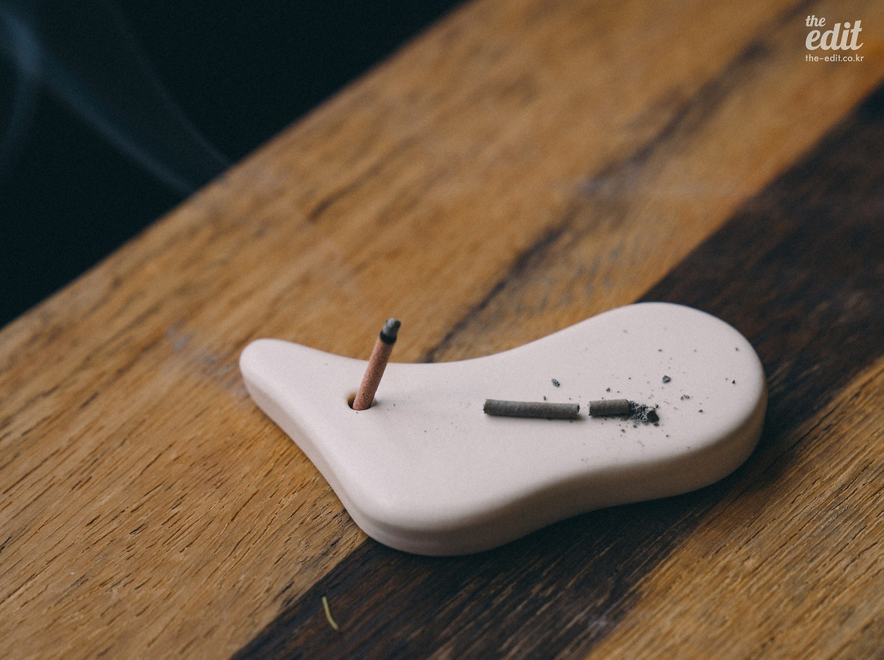 작은 홀더가 과연 제 역할을 할까 싶었는데, 툭 하고 타고 남은 인센스의 재가 홀더 위로 가지런히 떨어진다.