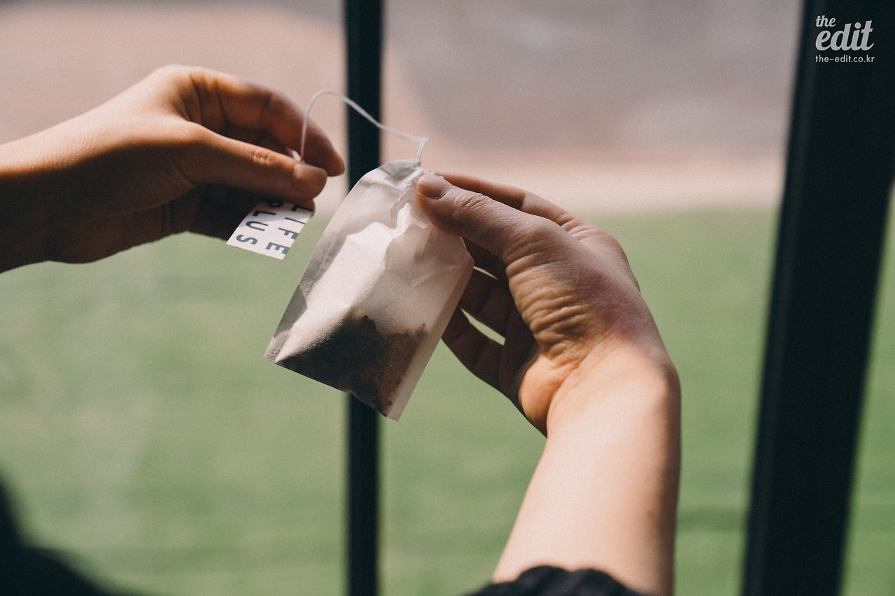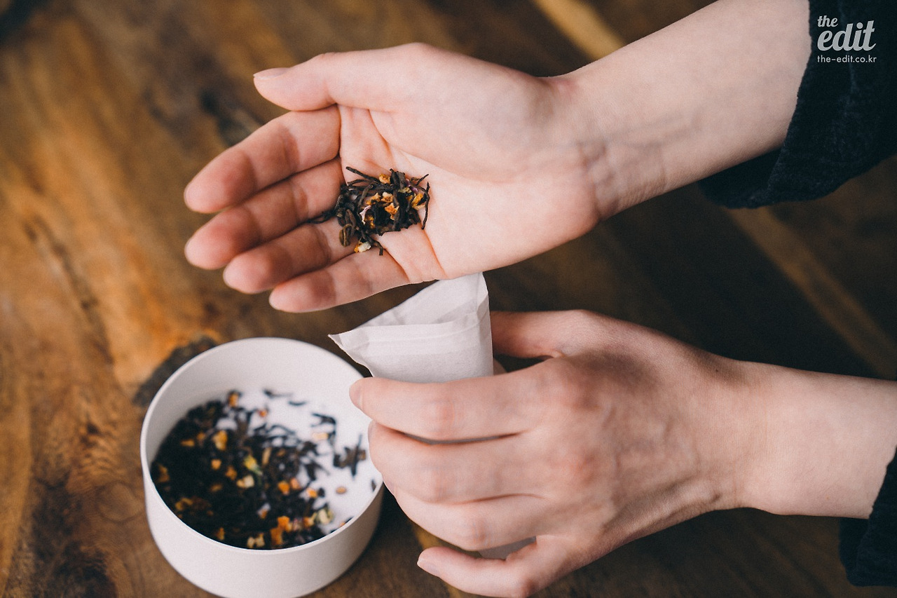 느긋하고 가벼운 마음으로 손으로 찻잎을 만지고, 향을 맡고, 필터 안에 찻잎을 넣는다. 소담스러운 필터를 꽉 오므려 컵에 담고 쪼르륵 뜨거운 물을 붓는다. 몇 개의 과정이 추가되면서 차를 마시는 과정은 일종의 경건한 의식같이 느껴진다. 차는 향긋하다. 보이숙차를 기본으로 유자의 상큼한 맛과 시나몬의 달콤함도 느껴진다. 호로록 따듯한 차를 목구멍으로 넘기면 온몸에 따듯한 온기가 돈다.
