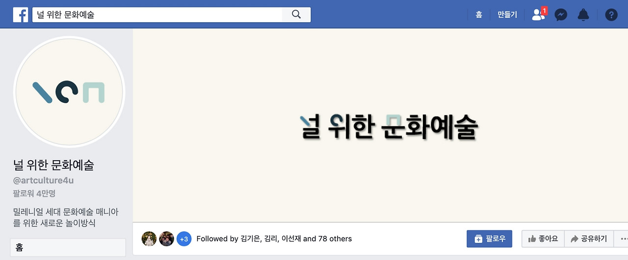 예술을 더 재밌게 즐길 수 있도록 도와주는 서비스, 널 위한 문화예술. 예술 잘 아는 똑똑한 친구가 전시장 가는 길에 핵심만 알려주는 느낌이랄까. 귀에 쏙쏙 들어오는 쉬운 언어와 흡입력 높은 영상으로 예술에 대한 이해를 돕는다. ‘예술과 디자인은 어떻게 다를까’, ‘기업들은 왜 예술작품을 이용할까?’, ‘굴림체는 왜 구리게 보일까?’ 등 흥미로운 주제를 다룬다. 어쩜 이렇게 내가 궁금한 것들을 잘 짚어주는지. 정말 날 위한 문화예술! 영상 콘텐츠를 만드는 곳이라 페이스북, 유튜브, 인스타그램을 통해 구독할 수 있다.