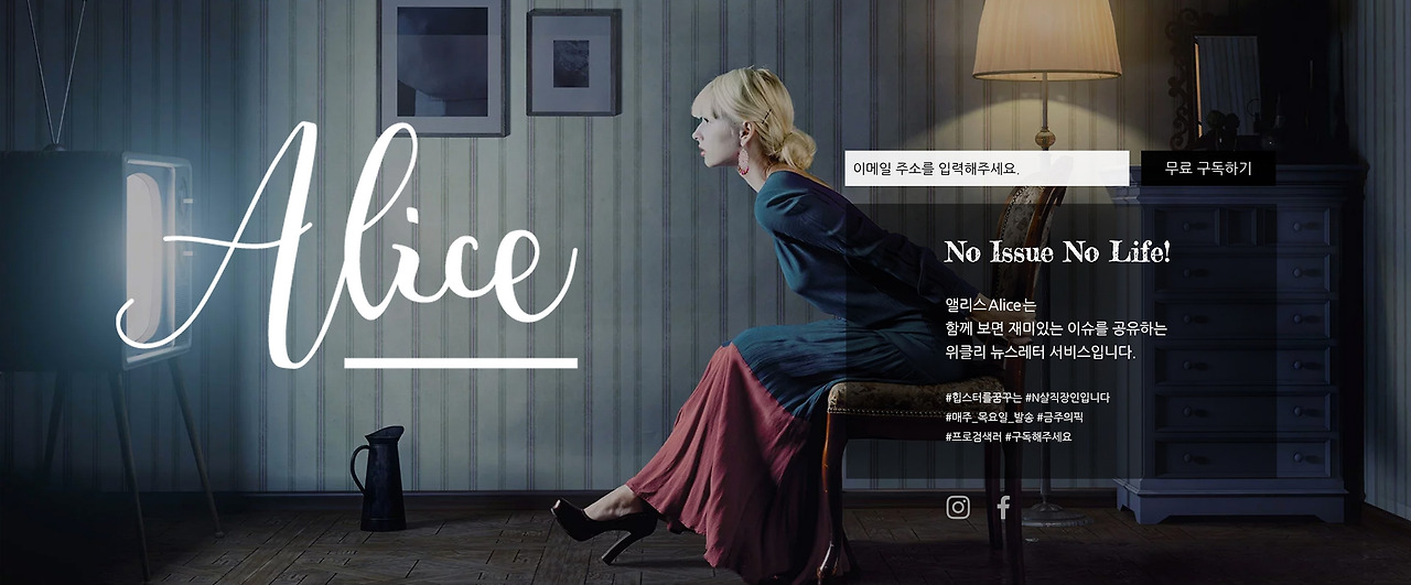 흔히들 “트렌드를 알고 싶거든 고개를 들어 디에디트를 보아라”라고 말한다. 하지만 이런 디에디트도 삼삼하게 받아보는 서비스가 있으니 바로 ‘앨리스미디어’. 이슈마다 한 장의 사진과 네 문장의 요약으로 소개해주는 뉴스레터다. 트렌드를 5분이면 볼 수 있다. 재밌는 건 이 ‘앨리스미디어’도 디에디트를 삼삼하게 받아보는 지 디에디트가 자주 소개된다. 좋은 상부상조. 보내주는 이슈의 출처를 밝히고 링크로 쏴주는데, 이 링크를 타고 정독하는 것도 재밌다. 이미 큐레이션 한 기사들을 또 큐레이션 하는 느낌! 큐레이션 뫼비우스.