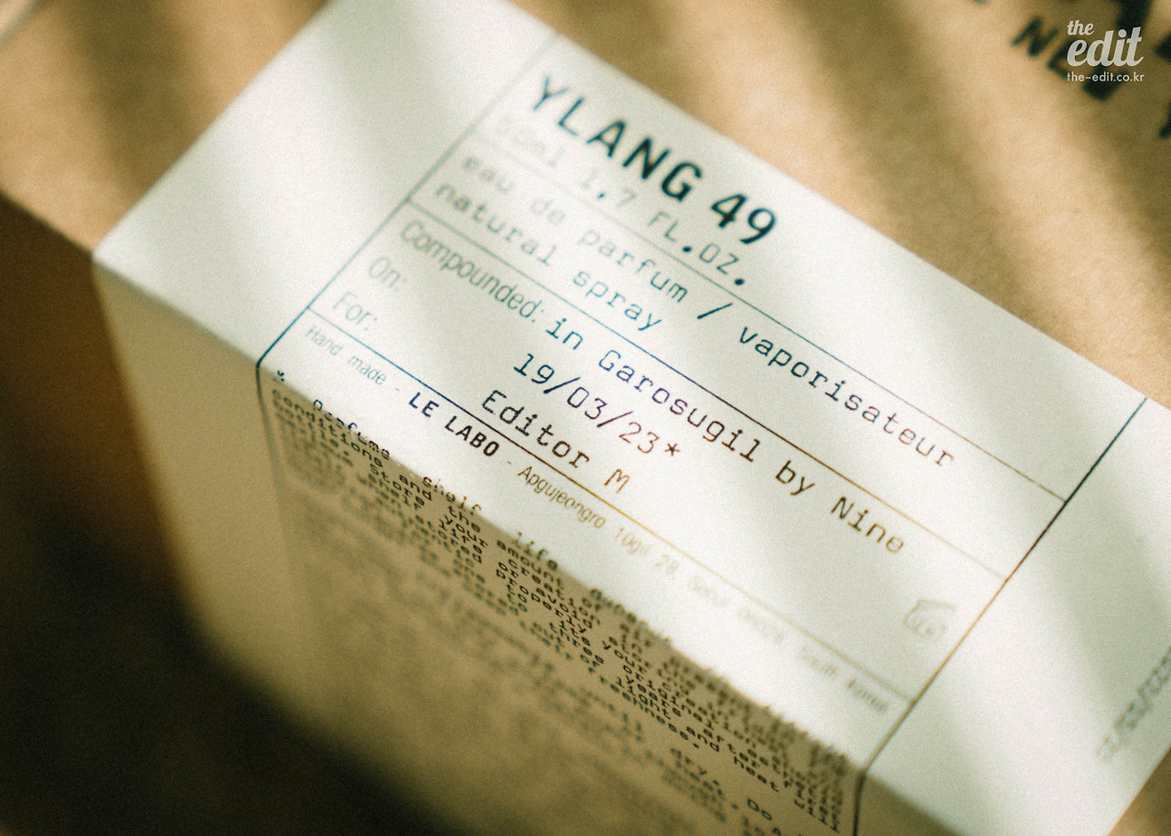 일랑49는 마흔아홉 가지 향료가 들어갔다. 9부터 49까지 다양한 숫자가 붙긴 하지만 20번대 숫자가 대부분이다. 일랑은 르 라보 중에서도 가장 많은 향료가 들어간 향수다. 의미인즉슨, 향의 층위가 굉장히 복합적이란 뜻이다. 첫 향의 느낌과 마지막 향의 느낌이 굉장히 다르다. 그리고 향도 굉장히 강하다. 욕심부리지 말고 정말 조금만 뿌려야 한다.