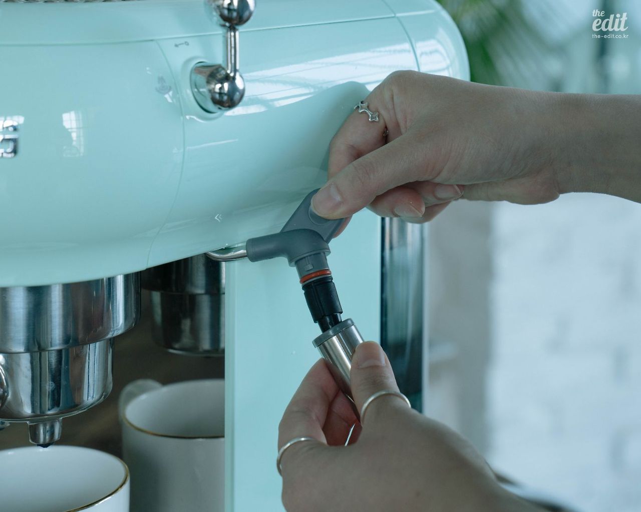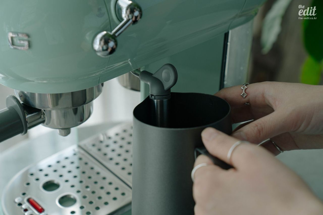머신 외부를 청소하는 것도 쉽다. 우유에는 단백질 성분이 들어있어 열을 가하면 딱딱하게 눌어 붙기 때문에 청소를 정말 잘 해줘야 하는 재료다. 라떼 제조 후 바로 닦아주지 않으면 스팀 노즐에 붙어 엄청난 잔해를 남겨서 꽤 성가시기 때문이다. 이럴 땐 스팀 피처에 우유 대신 물을 넣어 스팀을 틀고 다시 휘저어 주면 깔끔하게 세척할 수 있다. 그리고 마지막으로 더 후련함을 느끼기 위해 스팀 노즐을 분리해 세척하자. 스메그는 스팀 노즐을 분리해 따로 세척할 수 있다. 최고.