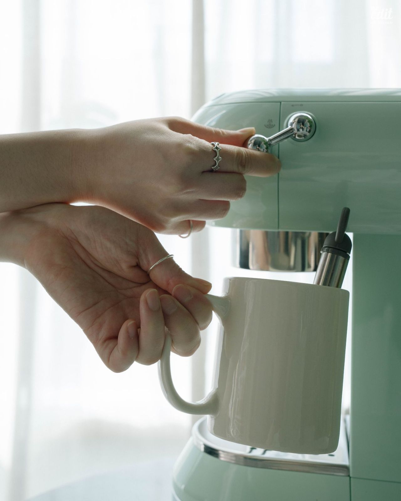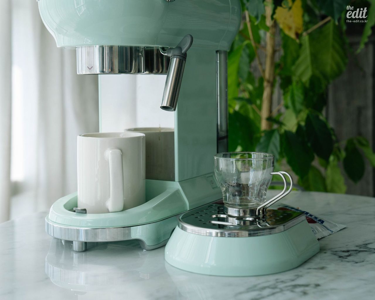 에디터 기은이다. 홈 카페를 만들고 싶단 욕망이 어언 1년째가 되었다. 이미 집에 드립 커피 세트와 모카포트가 있어서 고민을 좀 오래 했다. 무작정 지르면 엄마에게 등짝스매싱 당할 확률이 높기 때문이다. 다행히 내 고민을 종결해줄 머신을 찾았다. 디에디트 사무실에 스메그 커피머신이 들어온지 5개월째인데, 훌륭한 성능을 보여줬거든. 덕분에 매일 라떼를 만들어 마셨고, 드립 커피 세트는 찬밥 신세가 되었다. 우리 신입이의 정확한 명칭은 스메그 반자동 커피머신 ECF01.