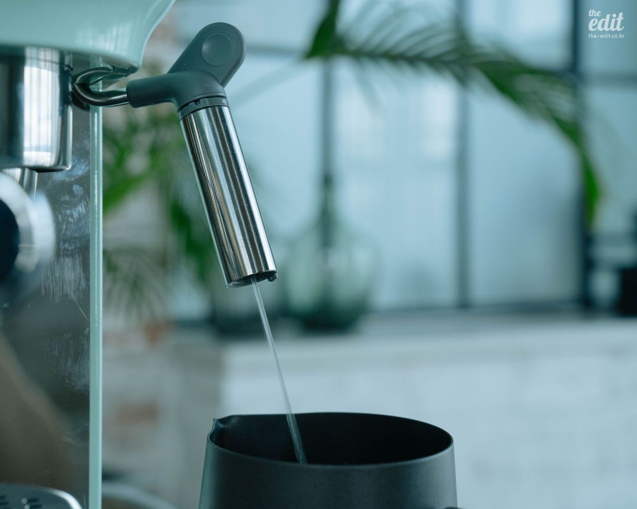 스메그에는 스팀 기능이 있어 우유를 데워 라떼나 카푸치노를 만들어 마실 수 있다. 스팀 밸브를 내리면 물이 나오고, 세 번째 스팀 버튼을 누르고 내리면 스팀이 나온다. 이 앙증맞은 스팀 밸브와 스팀 노즐 역시 손에 쥐고 움직이기 편하게 디자인됐다.