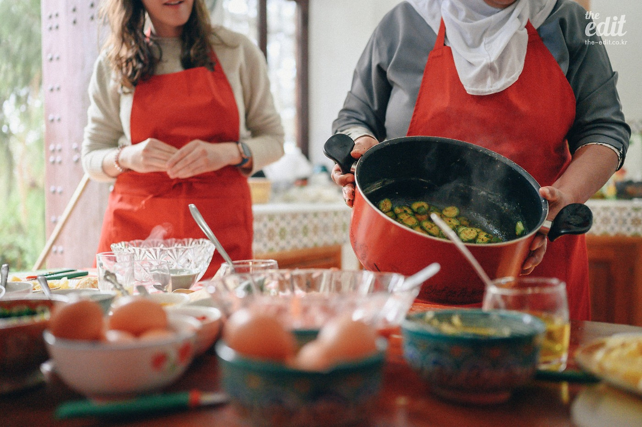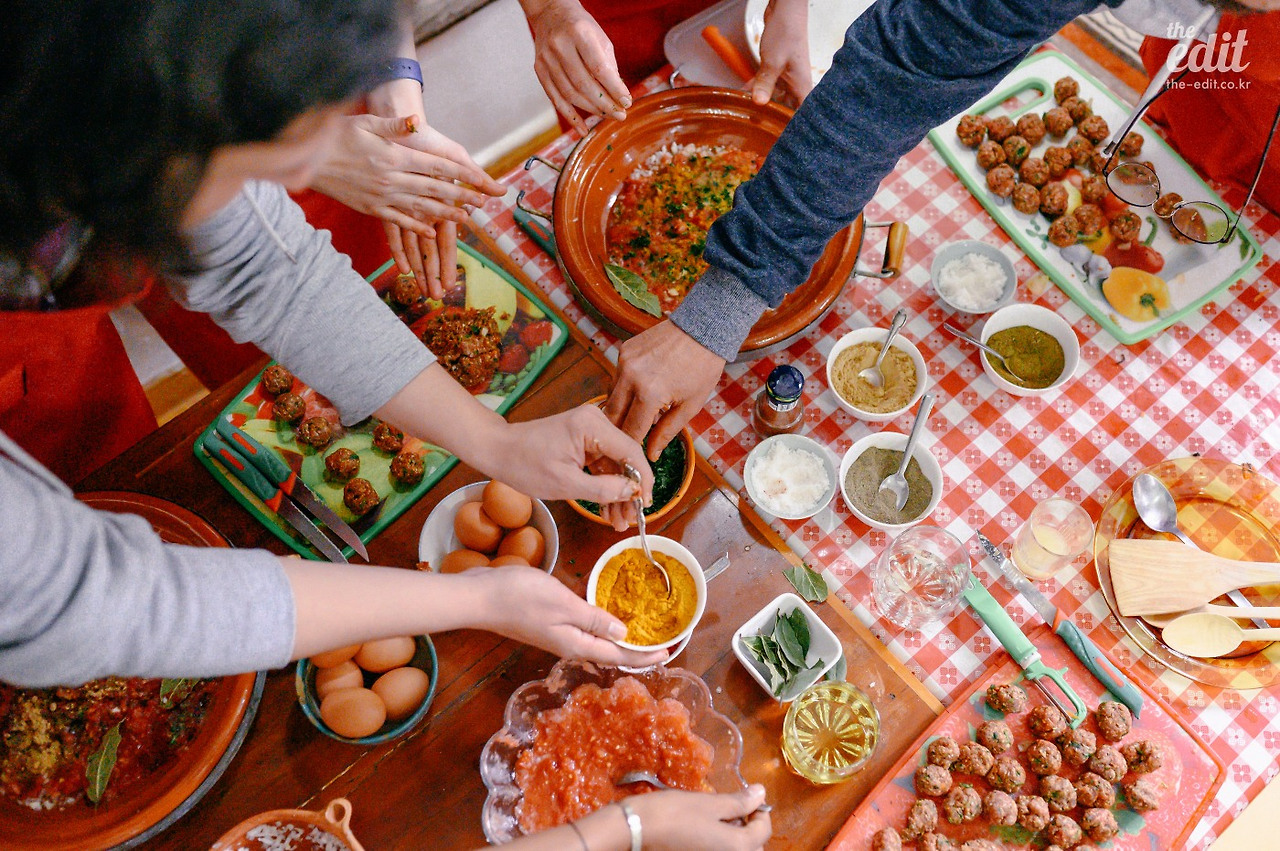 3개 조로 나눠 만든 타진은 식탁에 둘러 앉아 맛있게 먹었다. 신기한 건 모두 같은 지령을 받고 같은 재료로 만들었는데 하나같이 맛이 달랐다. 새로운 문화를 경험하는데 내 손으로 직접 만들고 입과 코로 느끼고 맛보는 음식보다 더 좋은 게 있을까?