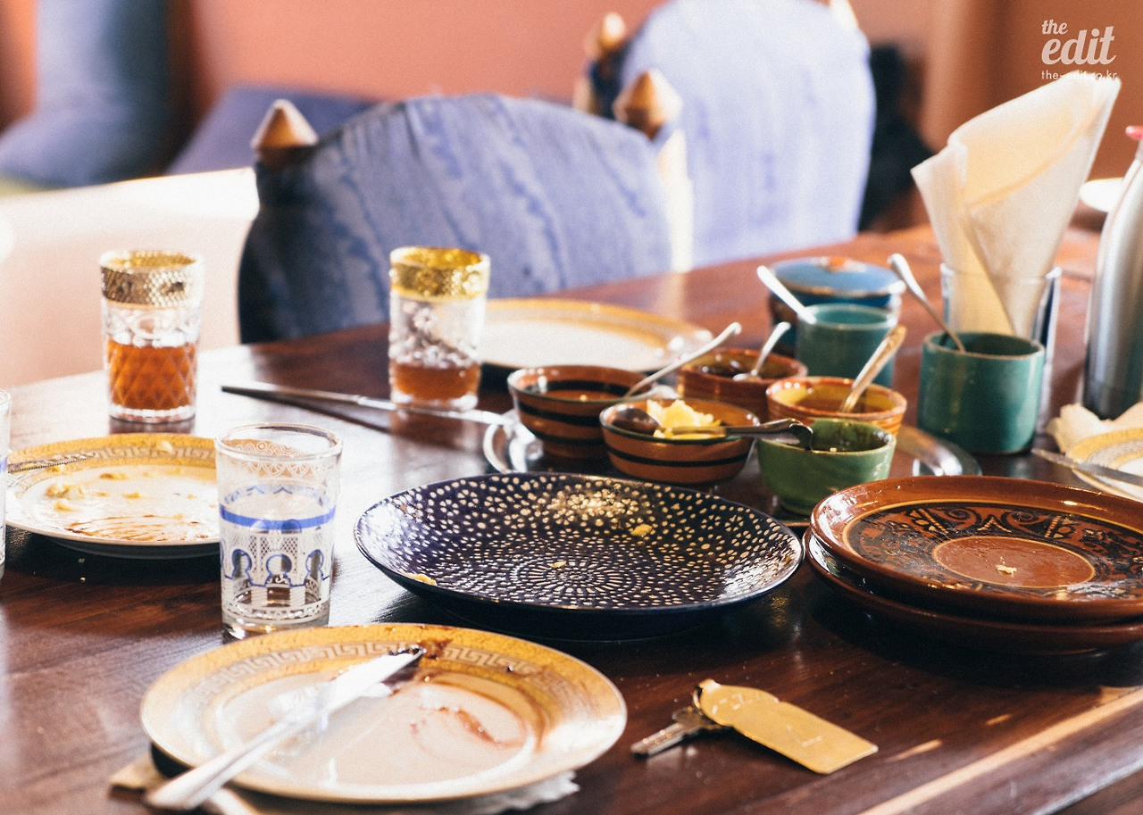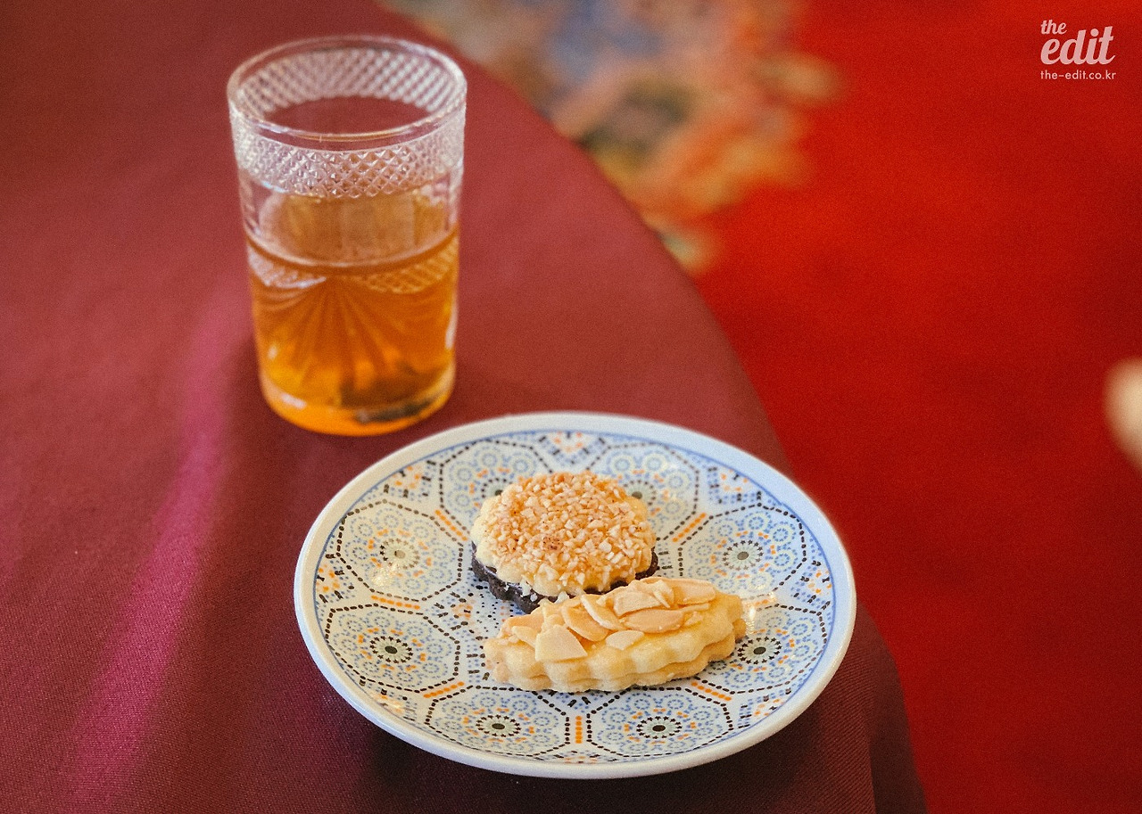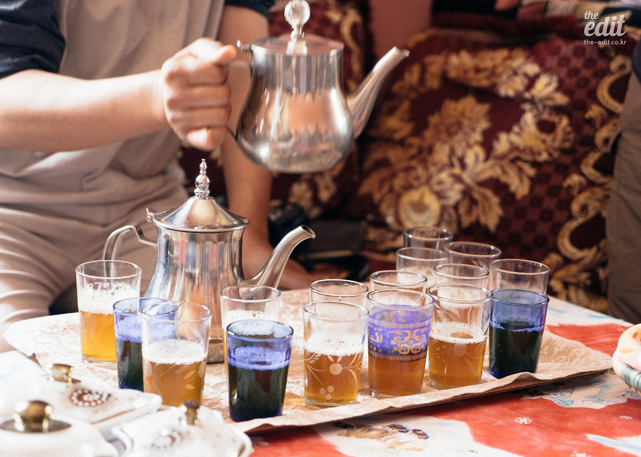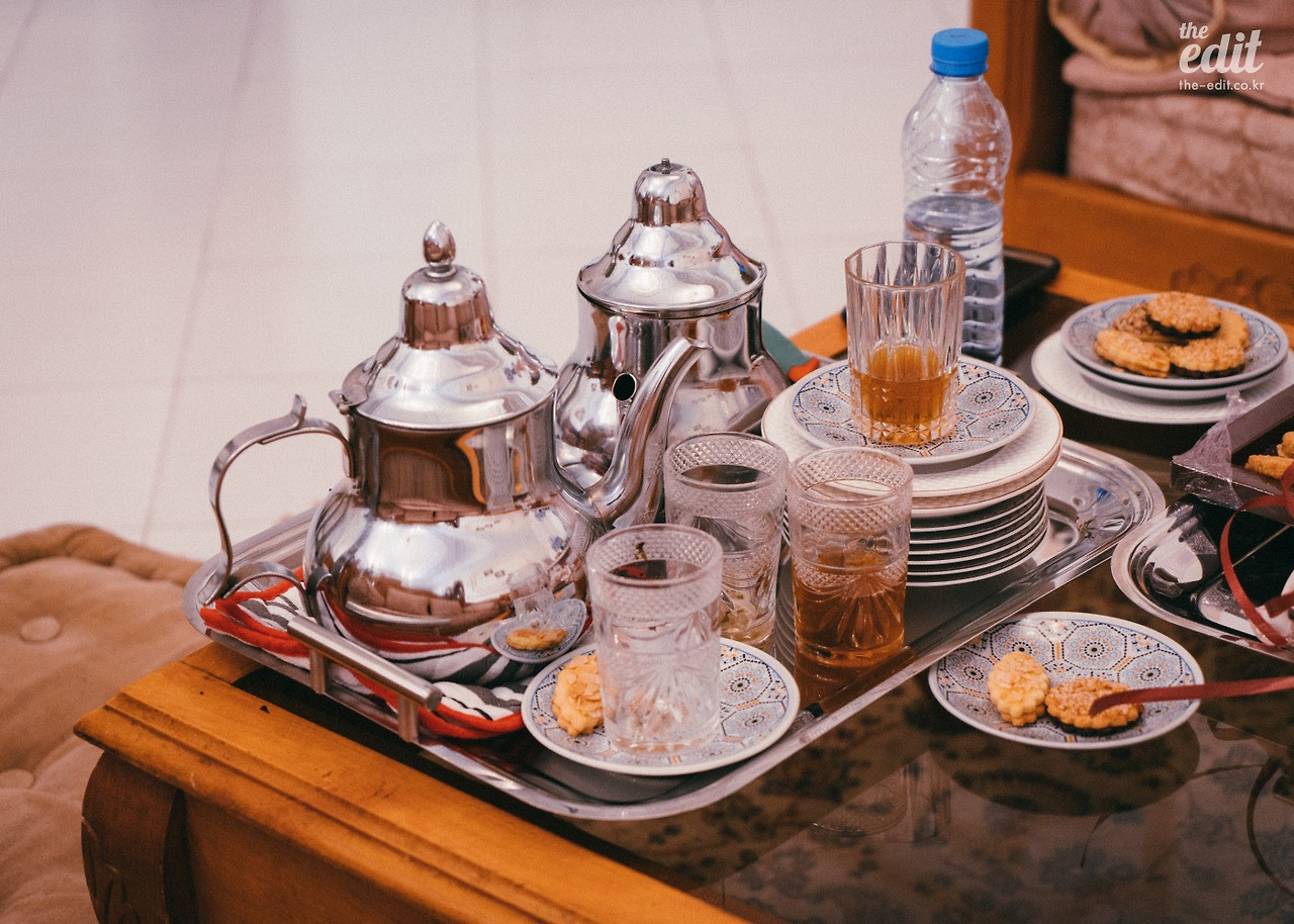 호스트의 거실에 앉아 방금 우린 따듯하고 달콤한 쿠키와 민트티를 마신다. 모로코 마라케시 사람들은 물보다 이 민트티를 더 자주 마신다. 아침에도 마시고 점심과 저녁 사이에도 마시고, 친구를 만나도 손님이 와도 모두 민트티를 마시면서 시작한다.