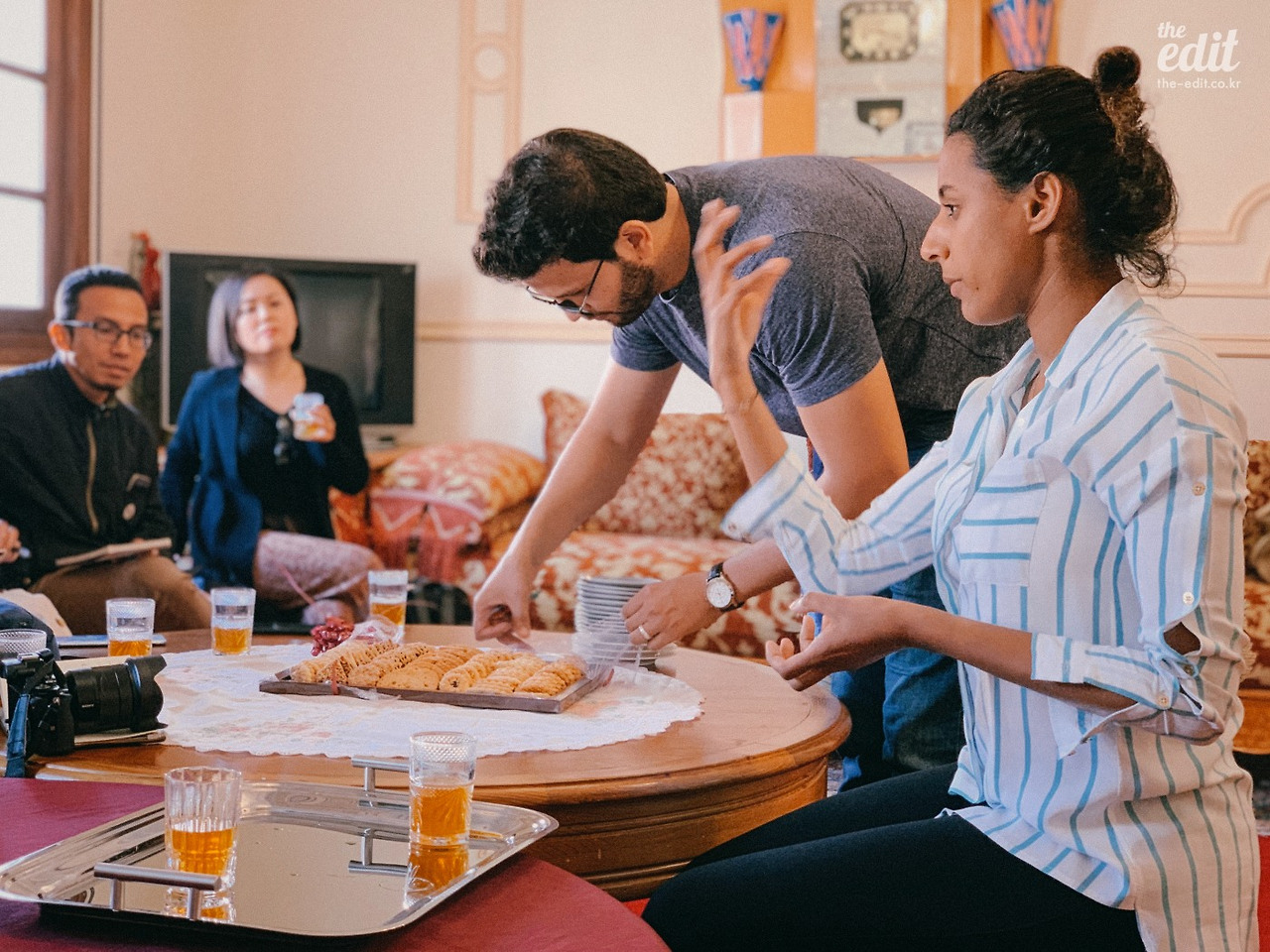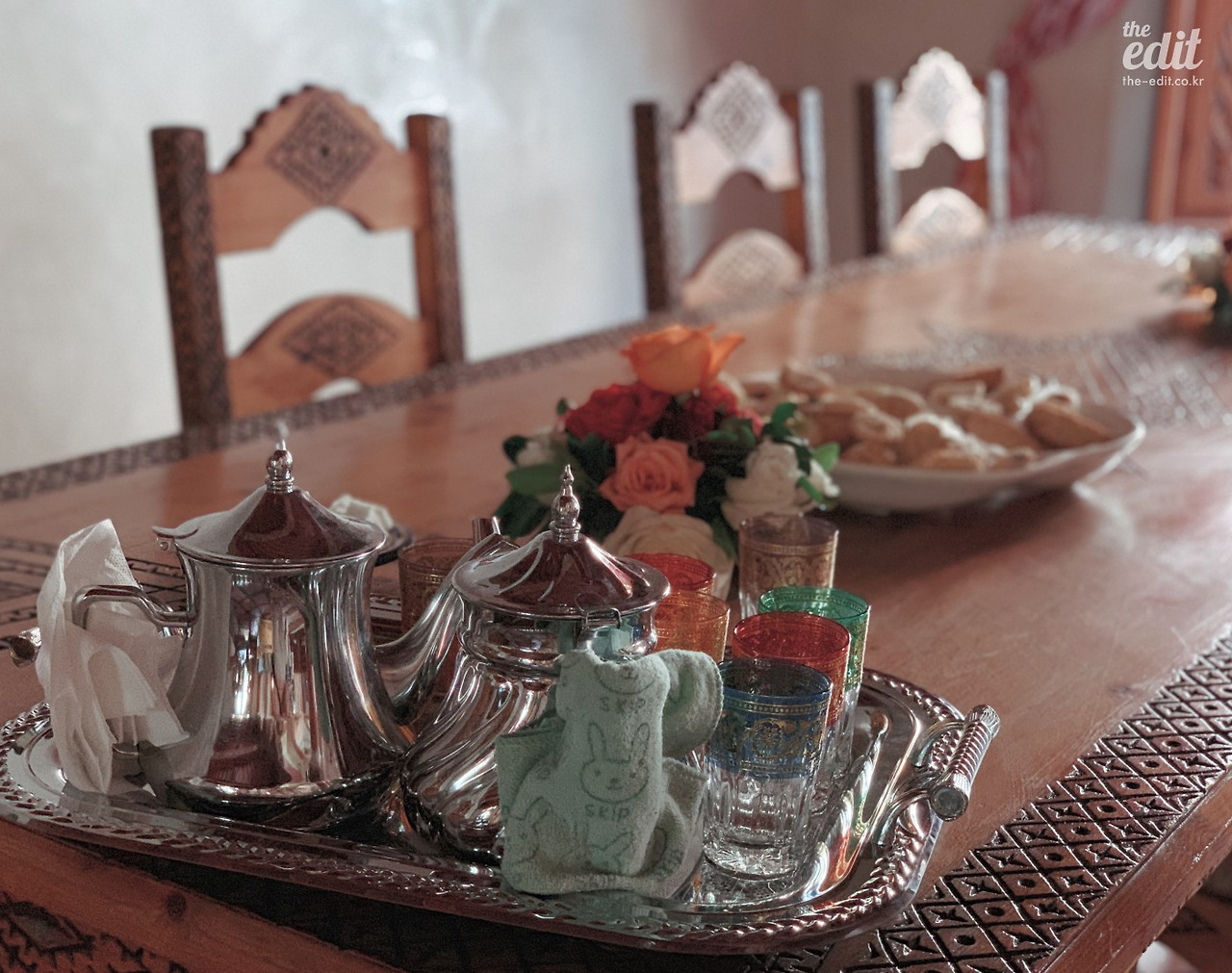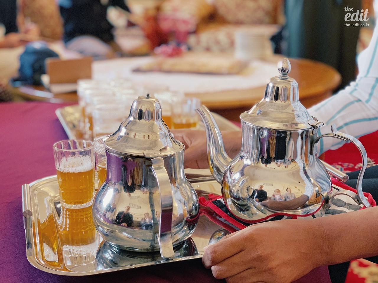 호스트의 거실에 앉아 방금 우린 따듯하고 달콤한 쿠키와 민트티를 마신다. 모로코 마라케시 사람들은 물보다 이 민트티를 더 자주 마신다. 아침에도 마시고 점심과 저녁 사이에도 마시고, 친구를 만나도 손님이 와도 모두 민트티를 마시면서 시작한다.