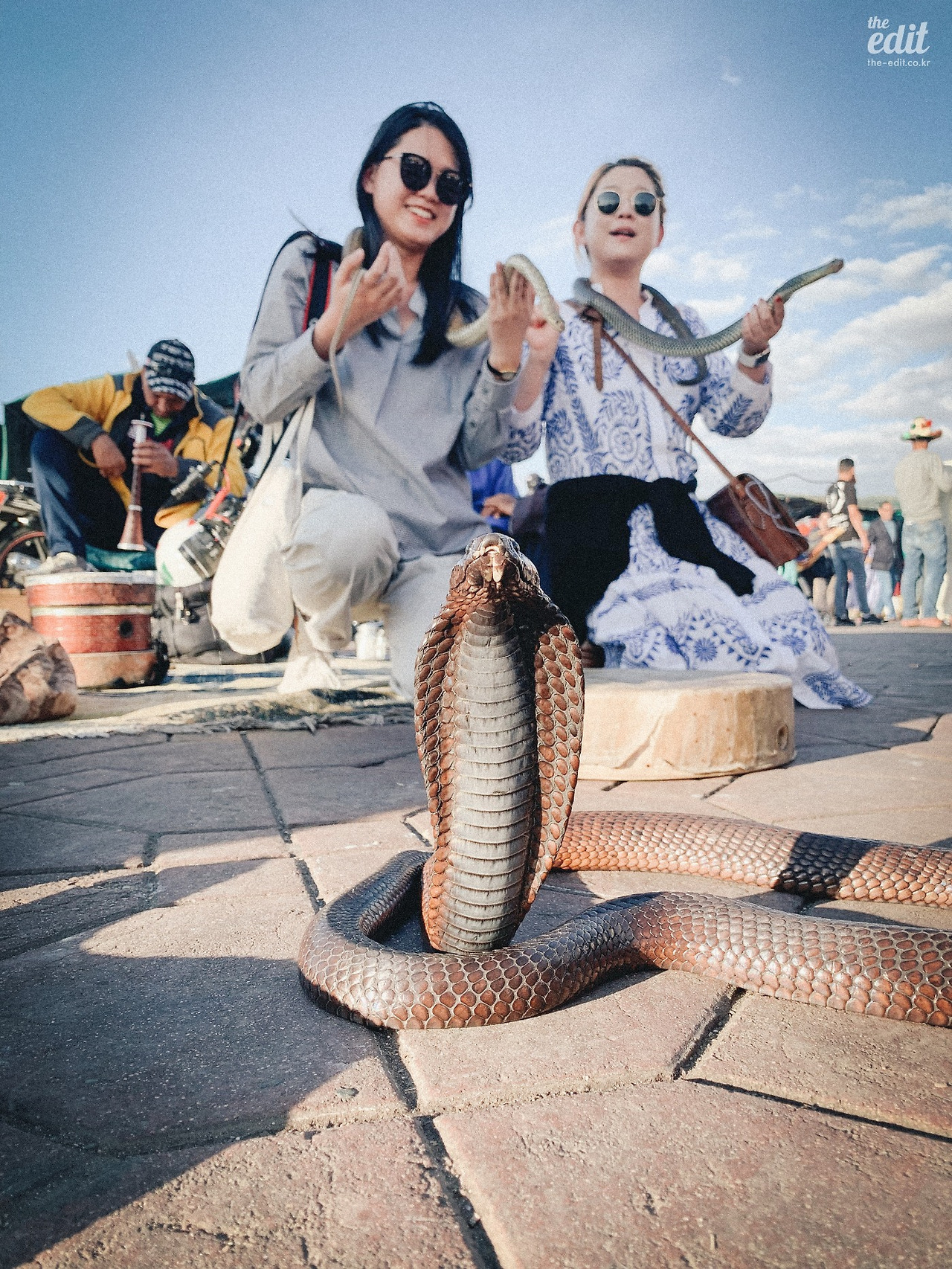 자유시간 생겨서 여기저기 기웃거리기 시작한다. 소리의 근원을 찾아 가보니 뱀, 아니 정확히 말하면 코브라가 또아리를 틀고 있었다. 너무 신기해서 사진을 찍으려고 폰을 가져다대는데, 옆에 있던 아저씨가 내 아이폰을 가로채갔다. 아뿔사, 또! 싶었지만 다행히 소매치기는 아니고, 기념 사진을 찍어주시더라고. 친절하다고 생각했던 나는 아이폰 대신 돈을 뜯겼다. 헤헤.
