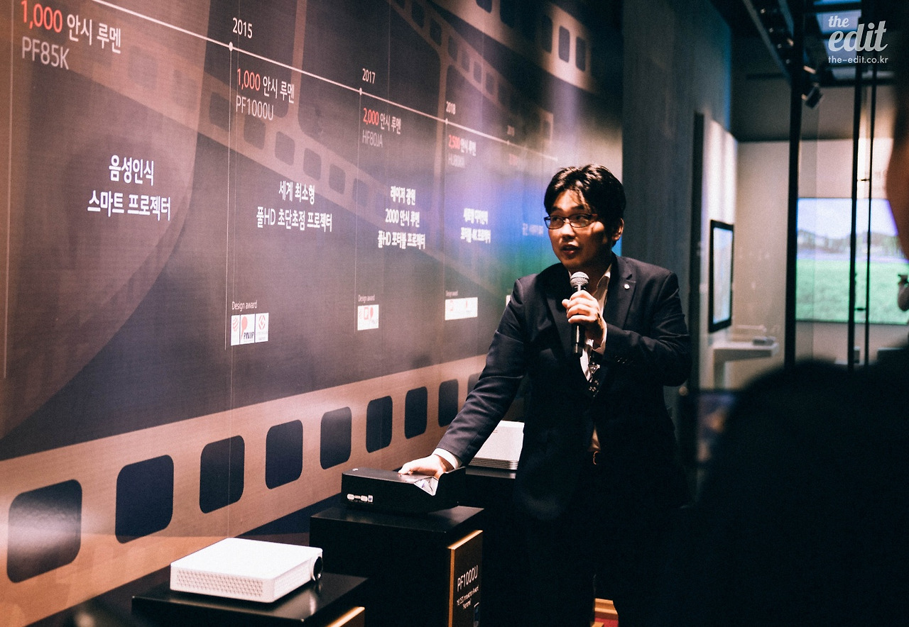 헨리는 LG 프로젝터를 4년 전부터 실사용하고 있다고 말했다. 실사용자답게 장점뿐만 아니라 빔프로젝터의 아쉬운 점까지 솔직하게 말하는 모습이 꽤 흥미로웠다. 다소 조용한 질의응답 시간에 직접 질문까지 하며 분위기를 밝게 만들었다. 빔프로젝터 행사장에서 밝은 사람이 역시 매력적이라는 뜻밖에 교훈을 얻었다.
