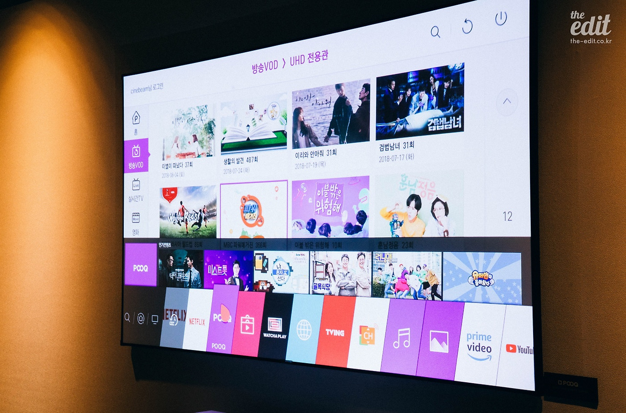 지난번에도 LG 빔프로젝터를 리뷰하면서 webOS의 편의성에 대해 호평을 한 적이 있는데, 시네빔 Laser 4K에도 당연히 탑재되었다. 단순하고 직관적이다. webOS4.5에는 넷플릭스, 왓챠플레이, POOQm TVing, 유튜브 등 없는 것 빼고 모든 게 있었다.