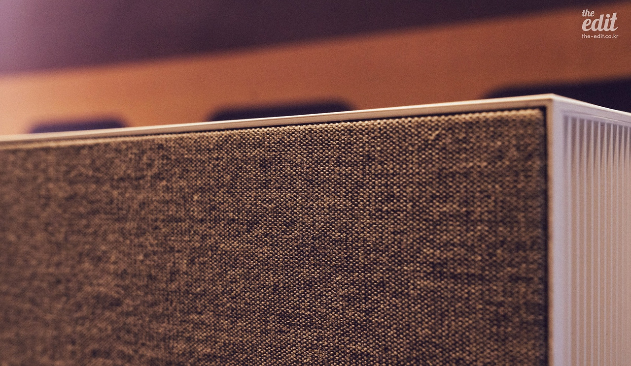 전면은 패브릭 재질로 마감했다. 덴마크의 패브릭 브랜드 크바드라트의 패브릭으로, 뱅앤올룹슨, BMW 등 유명 브랜드와 함께 협업해온 곳이기도 하다. CES 2019에서 큰 화제를 모았던 LG 롤러블 TV에서도 사용했던 소재다. 가로 68cm, 세로 34.7cm로 작지 않은 사이즈지만, 모던한 디자인 덕분에 공간에 잘 녹아든다. 블랙 컬러도 나오면 좋겠다.