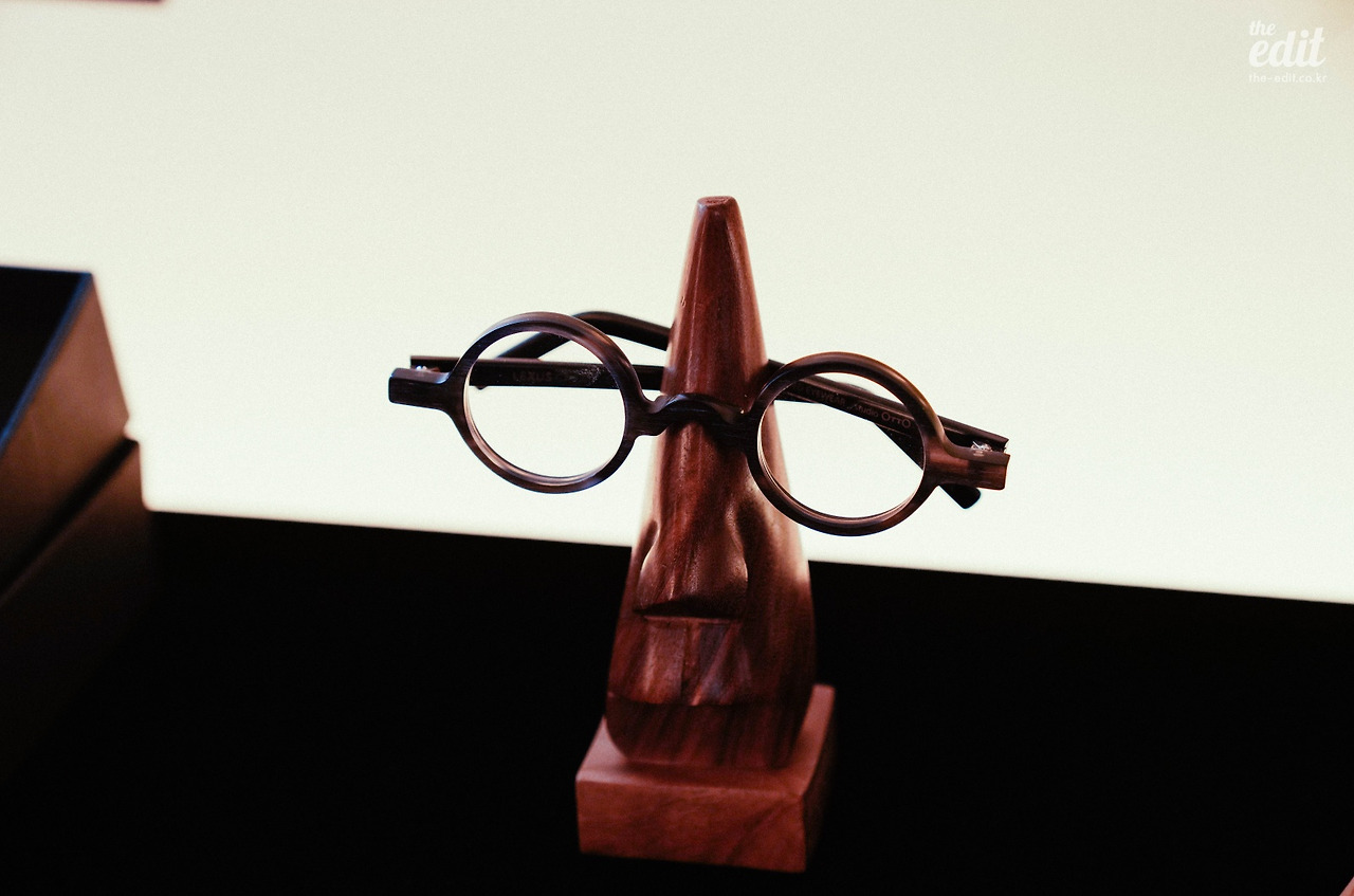 마지막은 가장 탐났던 수제안경이다. 수제 안경 작가 김길수가 디자인하고 제작한 이 안경은 재료 본연의 질감을 그대로 느낄 수 있도록 기계 작업은 최소화하고 손으로 정성스럽게 깎고 다듬어 완성했다고 하더라.