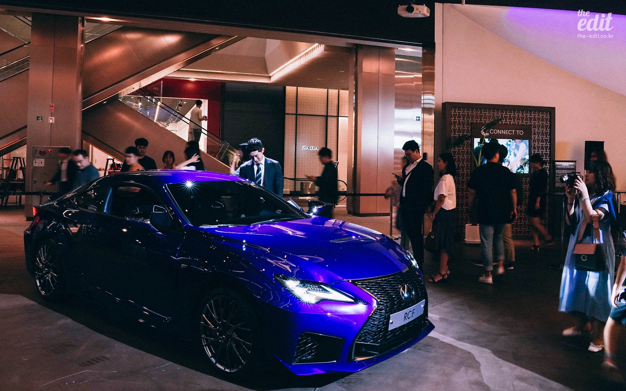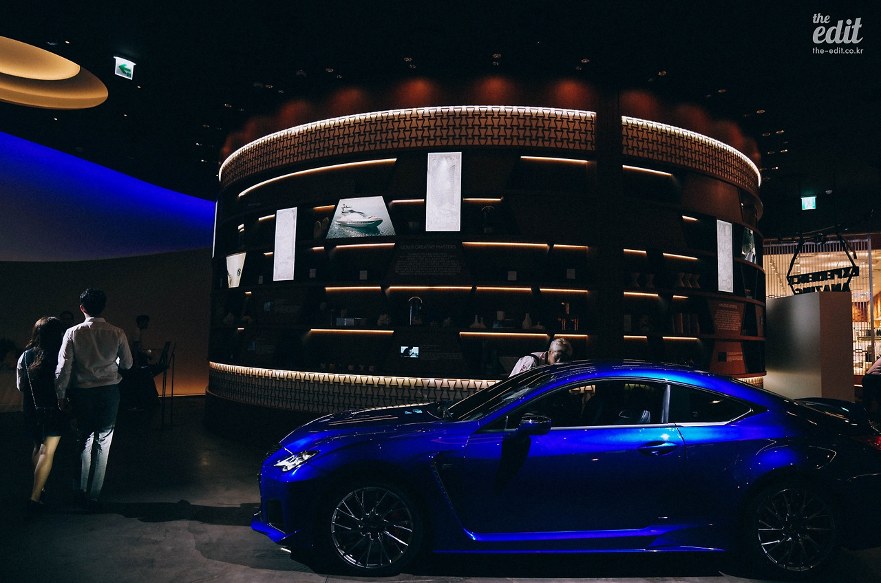 상관없다. 푸른빛이 도는 마감을 슥슥 만져도 좋고, 운전석에 타서 핸들을 잡아봐도 괜찮다. 많은 방문객들이 RC F 앞을 지나가며 자연스레 발길을 멈추더라. 금방이라도 앞으로 달려 나갈 것 같은 스포츠 쿠페의 유려한 디자인은 시선을 붙잡기엔 충분하니까. 직장인 커플도, 차에 관심 많아 보이는 남자 대학생들도, 아이를 안고 있는 아빠도 RC F 앞에서 포즈를 잡고 사진을 찍었다. 확실히 새로운 공간은 색다른 경험을 선물해주는 듯하다. 셔터음이 계속 들렸다.