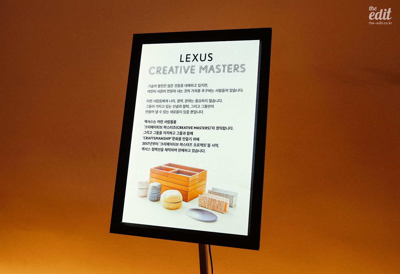 갤러리에서 볼 수 있는 작품은 자동차뿐만이 아니다. 위에서 살짝 언급했던 공예품들이 전시되어있는데, 이미 유명한 제품을 보다는 장인이 되기 위해 꿋꿋이 길을 가는 공예가들을 소개한다는 점이 인상적이었다. 사실 이런 테마의 전시는 처음이 아니고, 2017년부터 ‘크리에이티브 마스터즈’라는 이름으로 꾸준히 한국의 장인들을 소개해왔다. 그 이유가 멋있다.