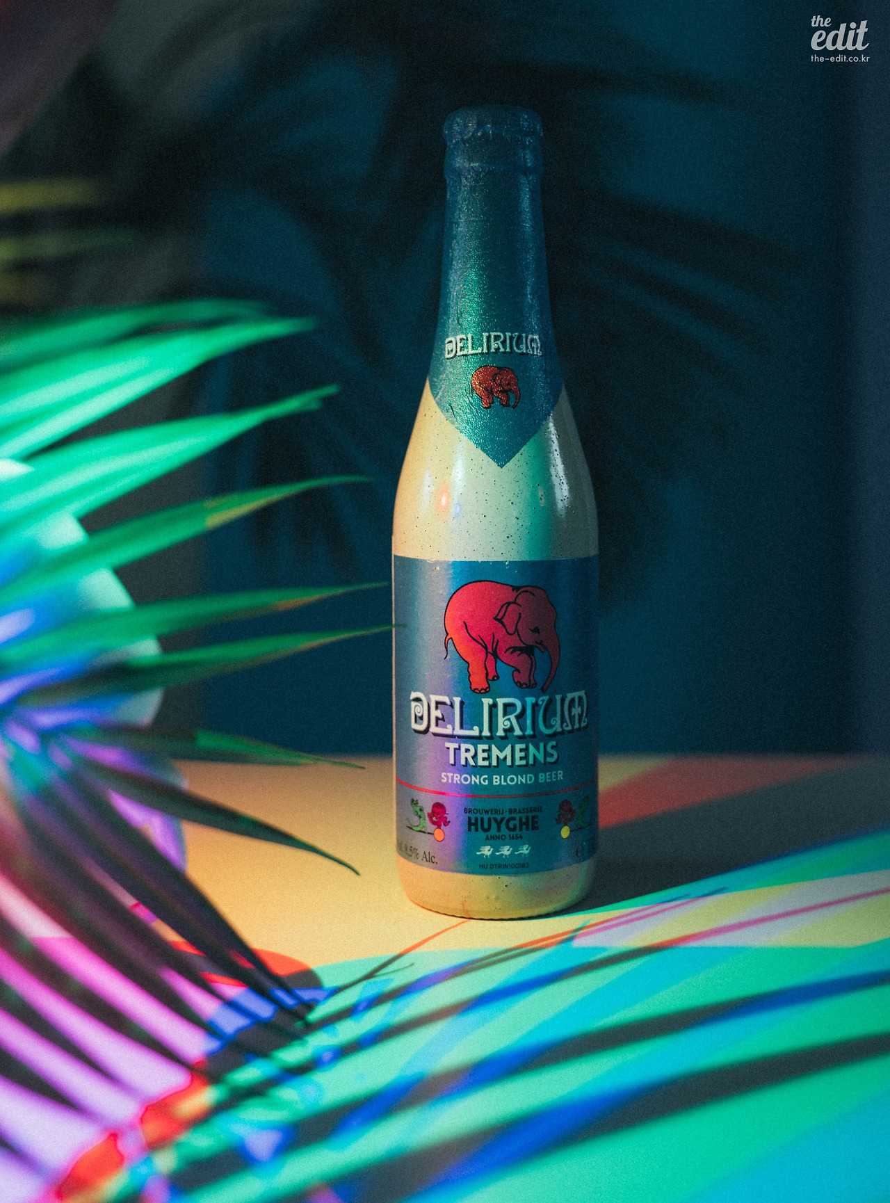 난 이 맥주를 보고 딱 두 번 놀랐다. 처음에는 핑크색 코끼리가 귀여워서, 두 번째 귀여움과는 어울리는 않는 알콜 도수를 보고. 무려 8.5도! 태국어처럼 디자인한 이름의 의미도 반전이다. 델리리룸 트레멘스는 ‘알콜중독에 의한 환각‘이라는 뜻이다. 무시무시하다.