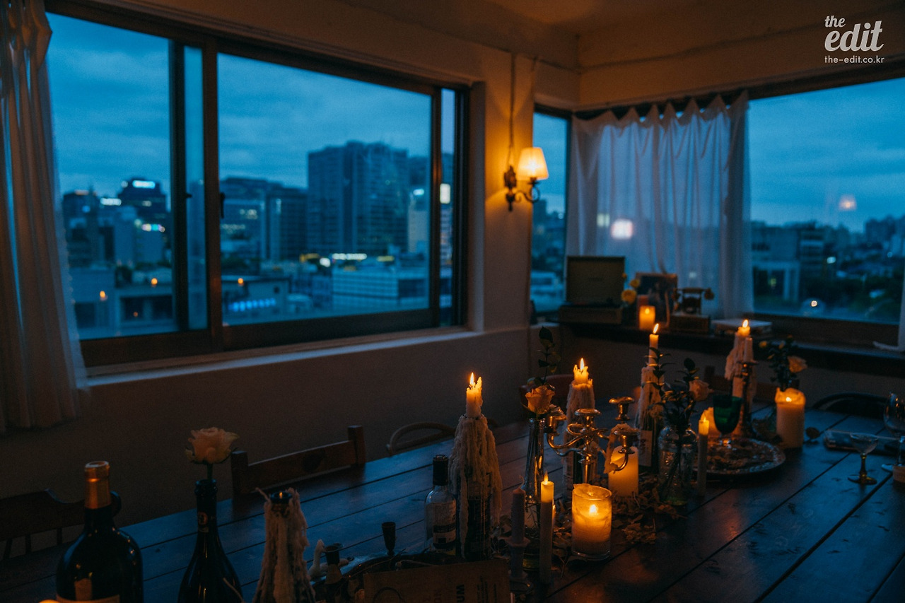 가운데 자리를 차지한 큰 테이블은 그런 컨셉에 딱 맞지 않나 싶다. 테이블을 가득 채워 넣은 촛불들까지도. 이곳이 6층인 이유 역시 외부와 단절된 느낌을 주고 싶어서라고 하니 여기는 오직 손님들의 대화를 위한 공간인 셈이다.