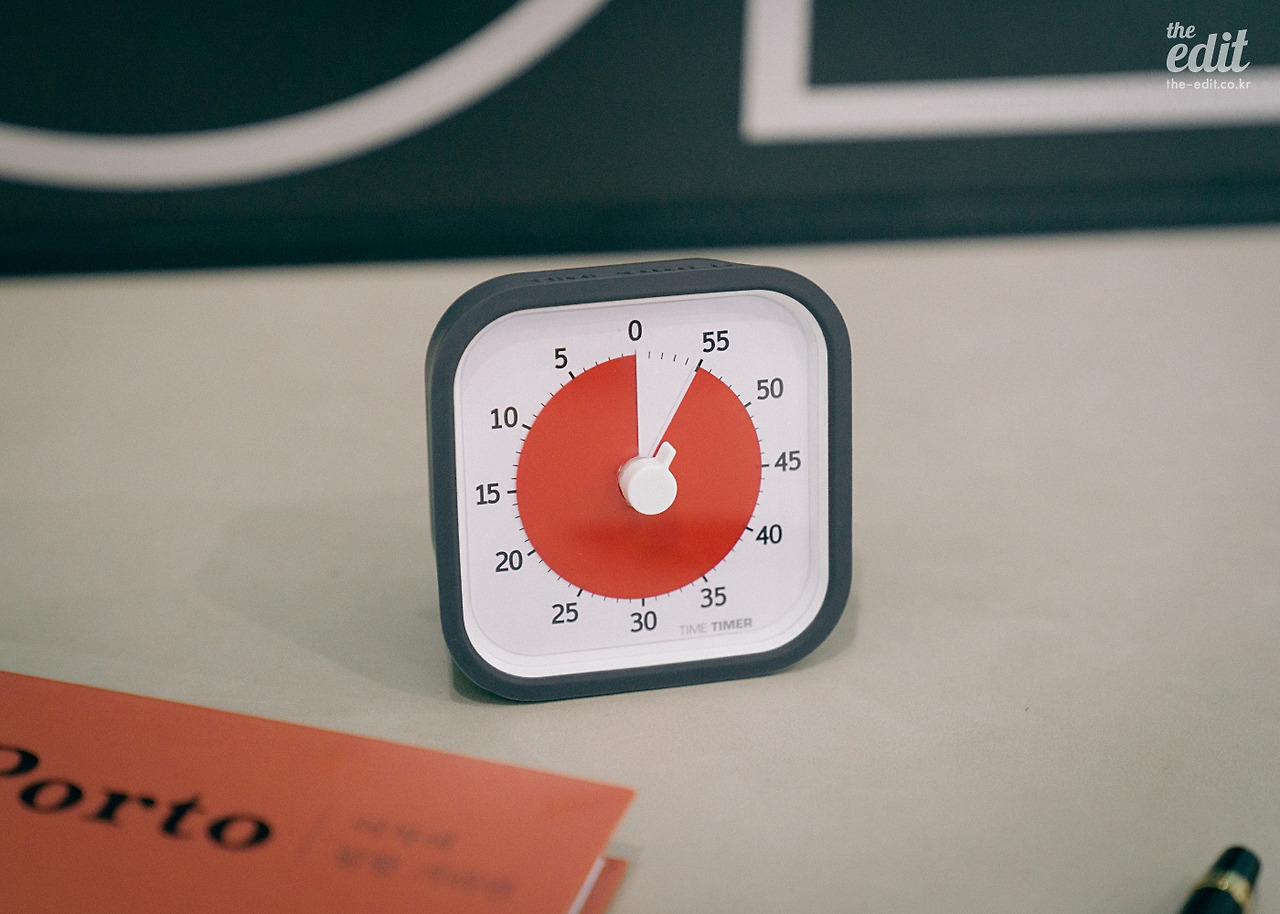 이제 결론을 내야겠다. 왜냐면 타임 타이머에 남은 시간이 많지 않기 때문이다. 요즘은 매일 아침 출근하면 메일을 보내며 타이머의 분침을 돌린다. 빨간색이 늘어나면 마음이 놓인다. 그리고 줄어들면 조급해진다. 사실 스마트폰에도 타이머 기능은 있다. 하지만 이 시계의 가치는 아날로그 방식으로 분침을 돌리는 행위 자체에 있다. 모든 일에는 끝나야 하는 시간이 있다. 그리고 그 시간은 내가 정한다. 나는 나와 약속을 지키는 사람인가? 이 7만 원짜리 건방진 타이머가 매일 내게 질문을 한다.