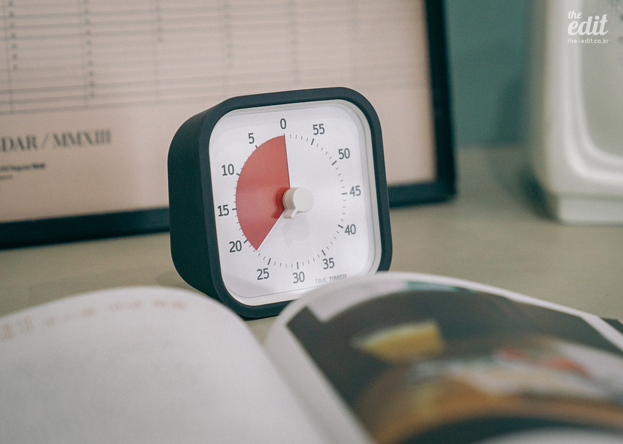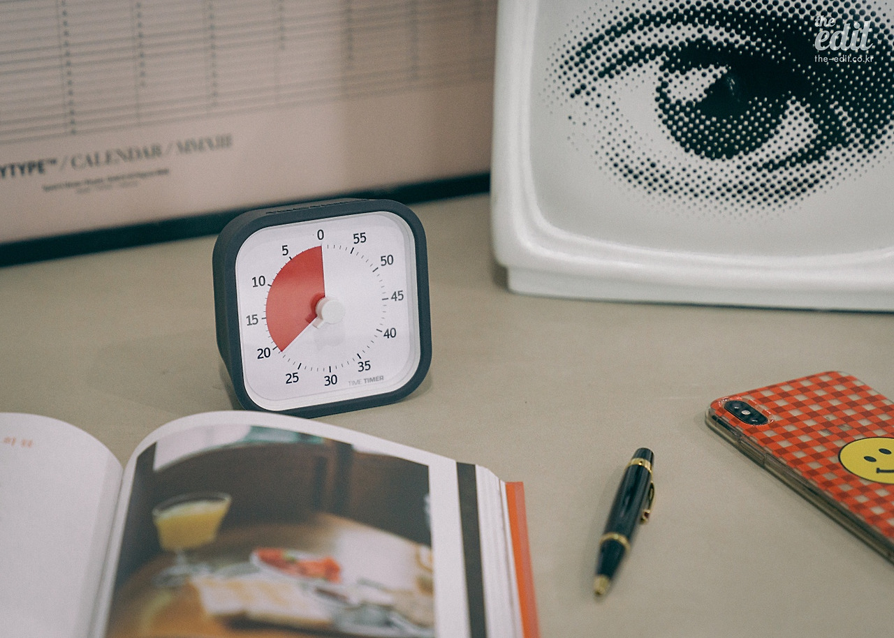이 제품 자체에는 큰 특색이 없다. 깔끔한 디자인과 직관적인 UI, 초침이나 분침소리 없이 조용하게 사용할 수 있다는 점? 하지만 고작 이 정도 특징은 손바닥만 한 타이머를 7만 원이나 주고 구입한 나의 호구 같은 행동에 면죄부가 되어주지 못한다. 그렇다. 타임 타이머에서 중요한 포인트는 아무것도 아닌 물건을 비싼 값에 사는 행위 그 자체다. 나는 이렇게 해서라도 일을 열심히 해보겠다는 굳은 결심! 구글에서 썼다고 하니 나도 써봐야 할 것 같은 사대주의!