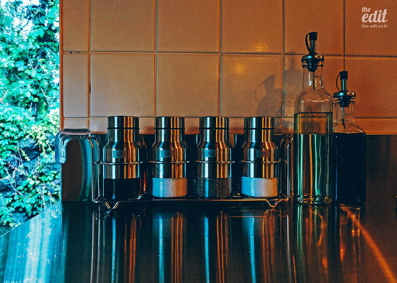 온갖 양념부터 식용유, 간장까지 구비돼 있다. 구색만 갖춰 놓은 일반 숙소와는 차원이 다르다.