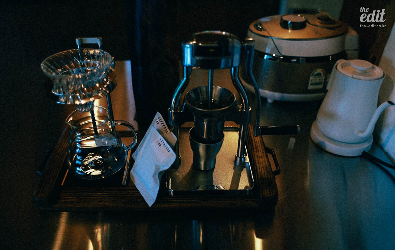 핸드드립 세트도 구비되어 있고, 원두 분쇄기부터 원두와 티 세트도 넉넉하게 준비되어 있다. 일본의 무역 공격이 시작되기 전에 구입한 발뮤다 토스터와 발뮤다 더 팟도 있다. 은근 명품 사랑이 곳곳에 보인다.