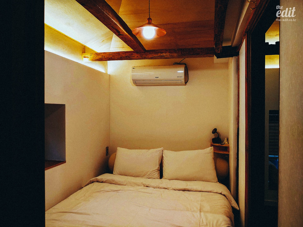 침실은 정말 딱 두 사람만이 들어갈 수 있는 공간이다. 여기서도 문을 열면 마당이 훤히 보인다.