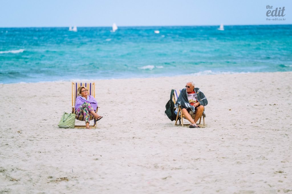 두 번째 단점은 해변에 연인이 많다는 거다. 나이대도 다양하다. 젊은 커플은 <봄날은 간다>에서 유지태가 이영애의 허리를 꺾으며 포옹을 했던 것처럼 격정적인 키스를 한다. 뭐, 상관없다. “우리 집에서 파스타 먹고 갈래?”라고 했던 커플도 언젠가는 “어떻게 사랑이 변해요?”라고 말하는 순간이 올 거니까. 진짜 부러운 건 나란히 벤치에 앉아 뜨는 태양을 바라보는 노부부다. 부러우면 지는 건데, 나는 매일 진다.