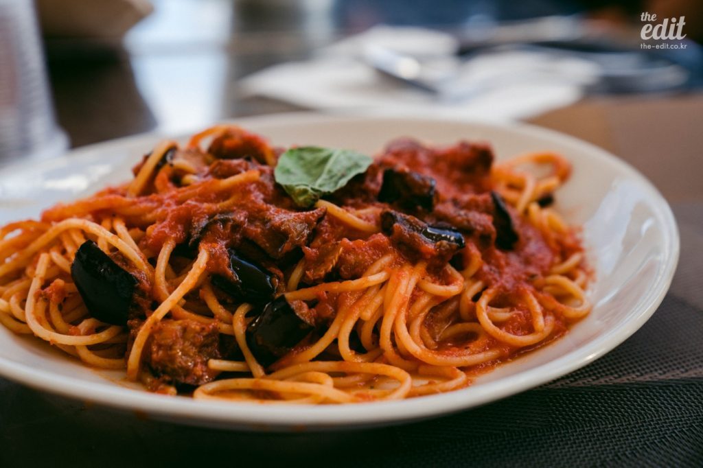 그리고 저렴하다는 것도 노르마 파스타의 장점. 내가 위에서 설명한 메뉴 읽는 법에 따르면 노르마가 식재료명이어야 하는데, 노르마는 재료가 아니다. ‘normal’이라는 단어에서 왔다는 설도 있고, 오페라 <노르마>에서 유래했다는 설도 있다. 들어가는 재료는 토마토 소스, 가지, 리코타 치즈 정도인데, 핵심은 가지다. 시칠리아 음식에는 가지가 정말 많이 들어간다. 유럽 음식에는 가지가 들어가는 요리가 많지 않은데, 이건 중동의 영향을 많이 받은 시칠리아 음식의 특징. 이야기가 또 슬슬 길어지려고 하니까 아랍의 영향을 받은 음식에 대해서는 다음 기사에서..!