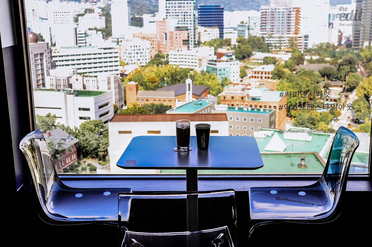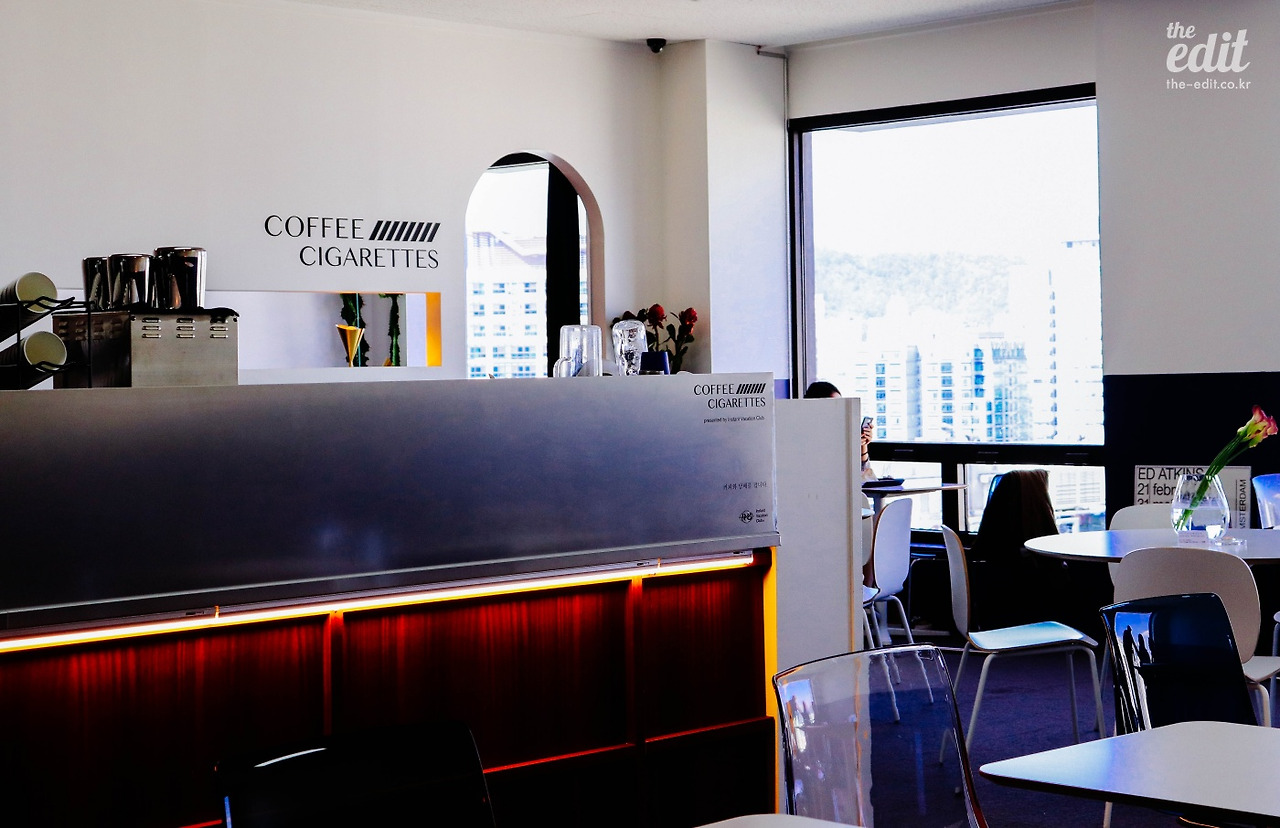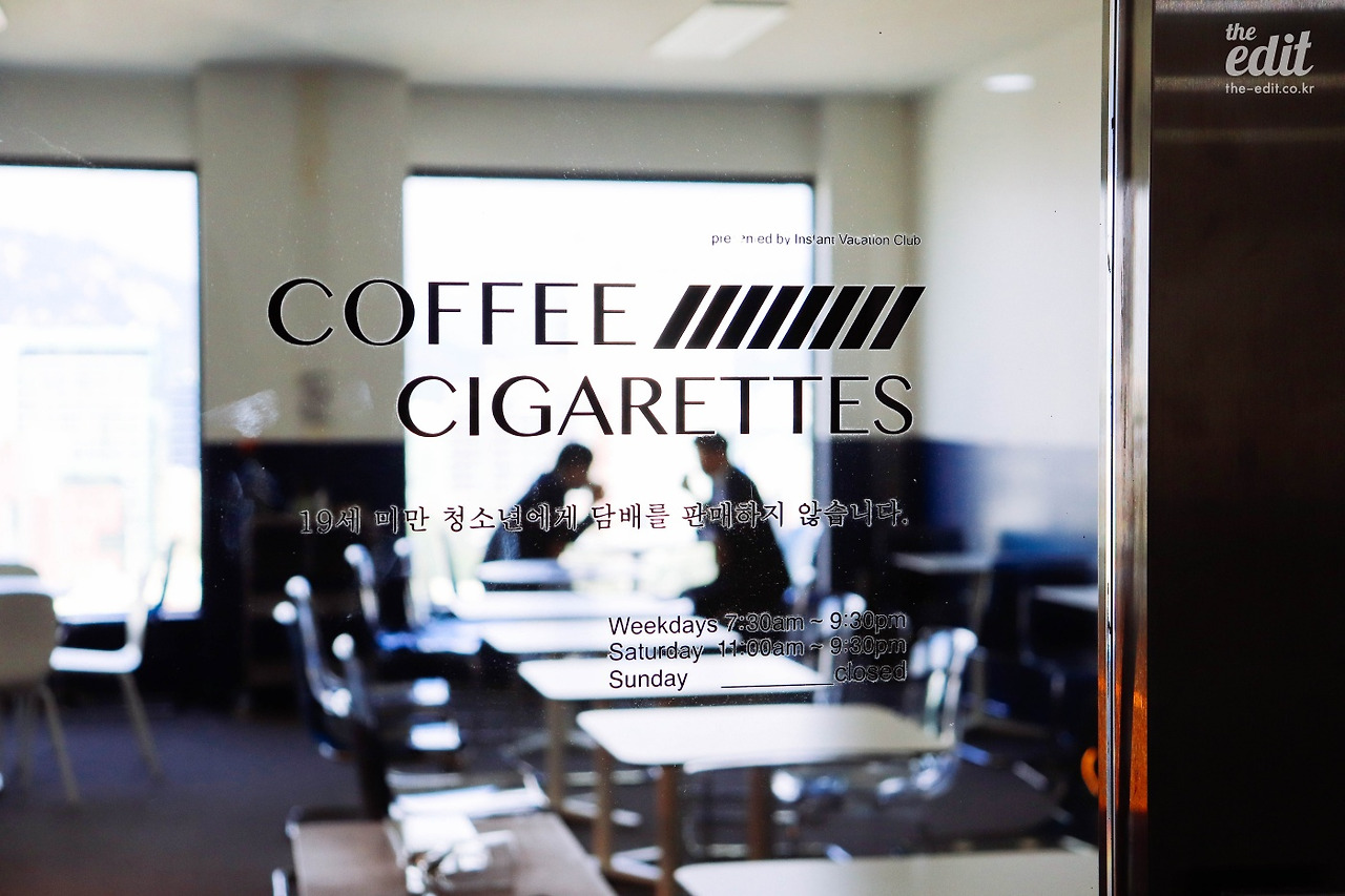 커피 앤 시가렛은 17층에서 내려서 우측으로 고개만 돌리면 찾을 수 있다. 옆에도 옆옆에도 사무실이 있는데, 투명한 유리 벽 안의 카페는 묘하게도 자연스럽다.